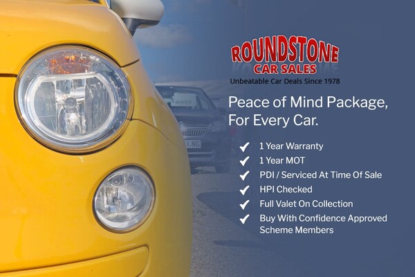 Unlike many other dealers you will not find the wording 'if required' or 'if less than 6 months' on our website pages. The car you purchase from us will come with a Roundstone Car Sales 'Peace of Mind Package' consisting of not only 12 Months warranty, but also 12 Months MOT with no advisories included in the price. All of our cars are also HPI clear.