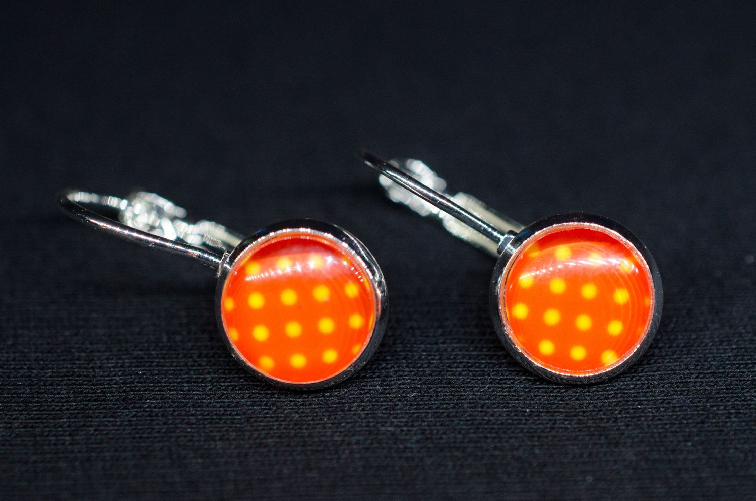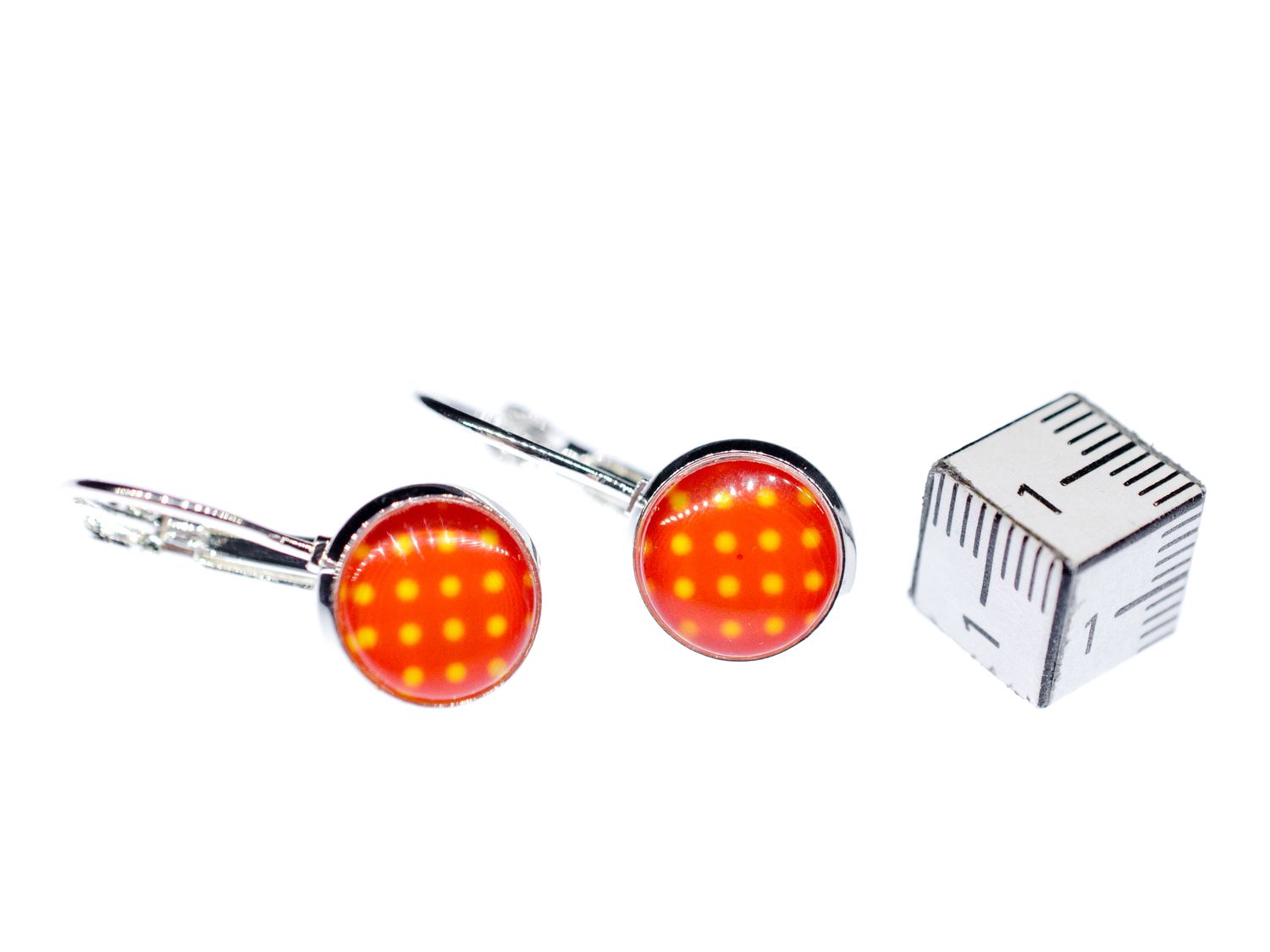 Sweet cabochon earrings in red with small dots.