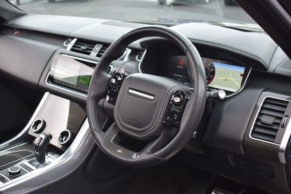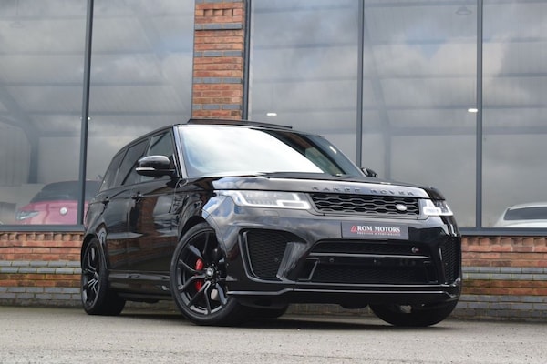 Rom Motors present this stunning Range Rover SVR for sale. Finished in the ever so desirable Santorini Black with full Ebony leather interior, with carbon interior package (centre console, steering wheel trim, dashboard trims). The vehicle has a few other desirable options including rear privacy glass, 22" gloss black alloy wheels, deploying side steps, soft close doors, opening panoramic roof and more! This SVR benefits from a well documented service history with Land Rover being serviced in 2021, 2022, 2023, 2024 and 2025 all buy main dealers and stored on their digital service logbook online. This is a lovely, genuine 2 owner vehicle and is presented in fantastic condition all round. 10.9% APR Finance Available along side a wide range of lenders. *Appointment Only* Please call ahead to arrange a viewing or test drive with a member of our friendly sales team. All our vehicles are HPI Clear & prepared to a high standard following a full pre-delivery inspection from our in house team of technicans. 3 Months Warranty is included on all vehicle with extensions available up to 36 months, ask our sales team for more details. Videos available on request. PAYMENT: We accept debit cards for payments up to £500. For larger payments we accept BACS (bank transfer) only. Please check transfer processing times and limits with your bank if you plan to pay on collection as we are unable to release cars without cleared funds. Please also bring anything you may need to access your online banking on the day including securekeys, card readers etc. Please note a £249 admin fee is applicable for purchases funded by third party finance lenders. Call or WhatsApp .Soft Door Close, Perforated Windsor Leather with Suedecloth Inserts - Ebony-Ebony, Extended Carbon Fibre Trim Finisher, Santorini Black, Suedecloth Headlining - Ebony, Bonnet - Body Colour Carbon Fibre, Sliding Panoramic Roof, Privacy Glass, Body Coloured Roof, 22in Alloy Wheels - 5 Split Spoke Style 5083 with Gloss Black Finish, 12V Power Socket, 21in Alloy Wheels - 5 Split Spoke Style 5091 with Satin Polish Finish, 360 Degree Parking Aid, 60-40 Folding Rear Seats, ABS - Anti Lock Braking System, ATPC - All Terrain Progress Control, Active Exhaust Control, Adaptive Cruise Control with Stop and Go, Adaptive Dynamics, All Terrain lnfo Centre, Aluminium Bonnet, Aluminium Gearshift Paddles, Android Auto, Apple CarPlay, Auto-Dimming Interior Mirror, Auto-Dimming Power Fold - Heated Door Mirrors with Memory and Approach Lights, Automatic Headlights, Blind Spot Monitor, Bluetooth Connectivity, Body Coloured Side Sills and Bumper Corners, Brake Pre-fill, Bright Metal Pedals, CBC - Cornering Brake Control, Centre Console with Armrest, Clear Exit Monitor, Configurable Dynamics, Configurable Interior Mood Lighting, Contrast Painted Roof - Narvik Black, Customer Configurable Autolock, Customer Configurable Single Point Entry, DAB - Digital Audio Broadcast, DSC - Dynamic Stability Control, Driver Condition Monitor, Driver and Passenger Airbags, EBA - Emergency Brake Assist, EBD - Electronic Brake-Force Distribution, EPAS - Electronic Power Assisted Steering, EPB - Electronic Park Brake, ETC - Electronic Traction Control, Electric Windows with One-Touch Open-Close and Anti-Trap, Electrically Adjustable Steering Column, Electronic Active Differential with Torque Vectoring by Braking, Emergency Braking, Extended Leather Upgrade, Extended Satin Brushed Aluminium Trim Finisher, Follow Me Home Lighting, Front Door Storage Space, Front and Rear Cupholders, Front and Rear Grab Handles, Front and Rear Recovery Eyes, Glovebox - Lockable, Gradient Acceleration Control - GAC, Gradient Release Control, HDC - Hill Descent Control, Heated Front and Rear Seats, Heated Rear Window, Heated Steering Wheel, Heated Windscreen with Heated Washer Jets, High Speed Emergency Braking, Hill Launch Assist, ISOFIX Child Seat Anchor Points, Illuminated Metal Treadplates with Brand-Name Script, InControl Apps, InControl Protect, Interactive Driver Display, Intrusion Sensor, Keyless Entry, Laminated Acoustic Front and Toughened Rear Side Glass, Lane Departure Warning, Lightweight Exhaust System, Loa