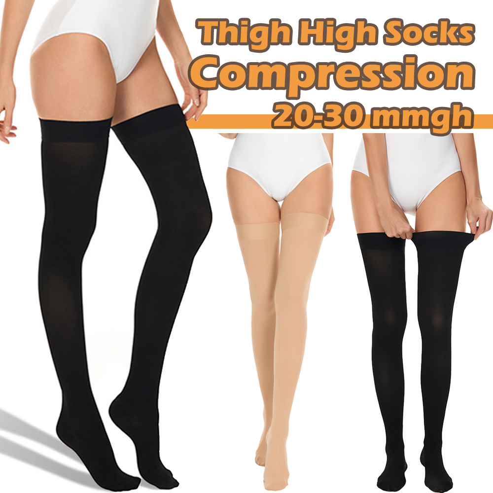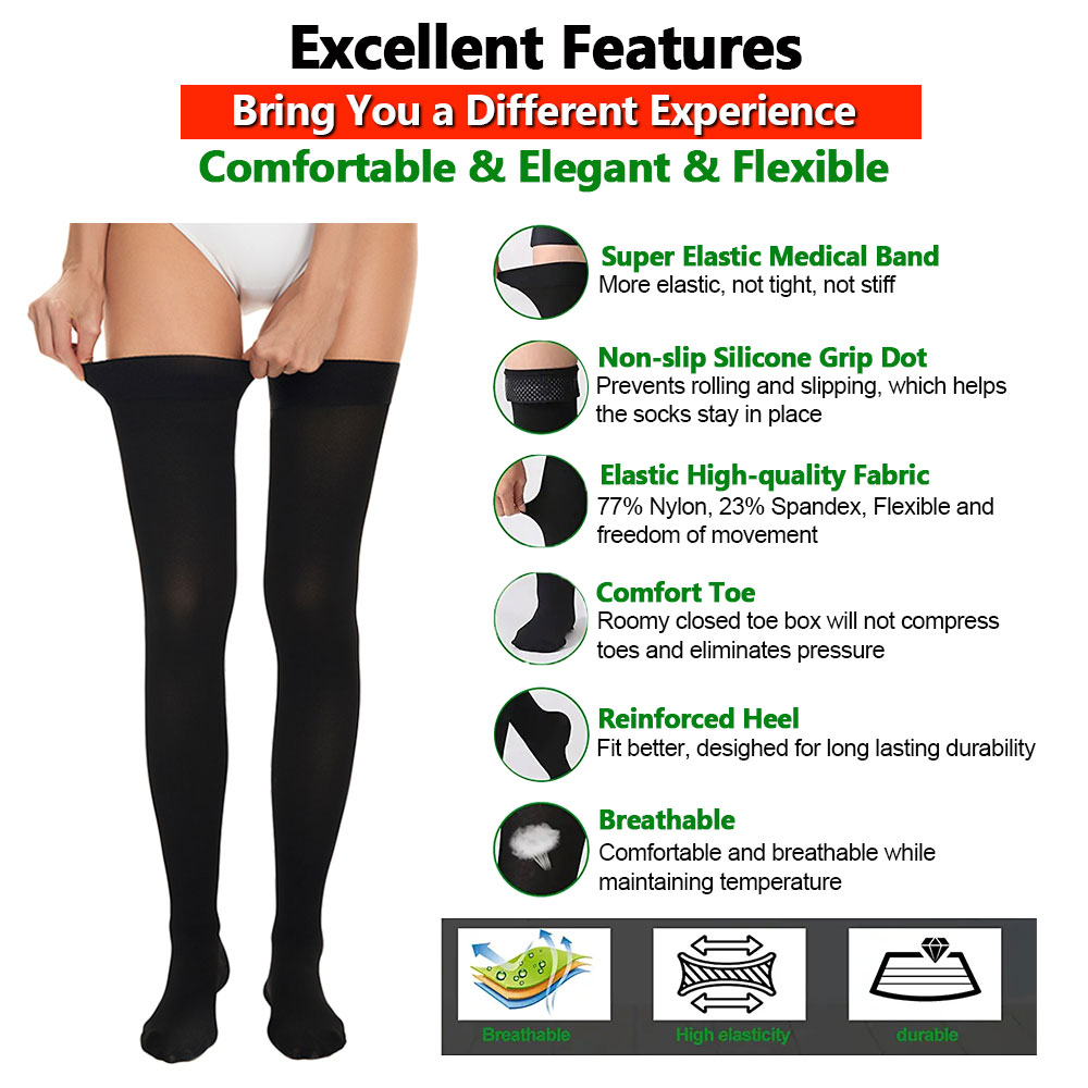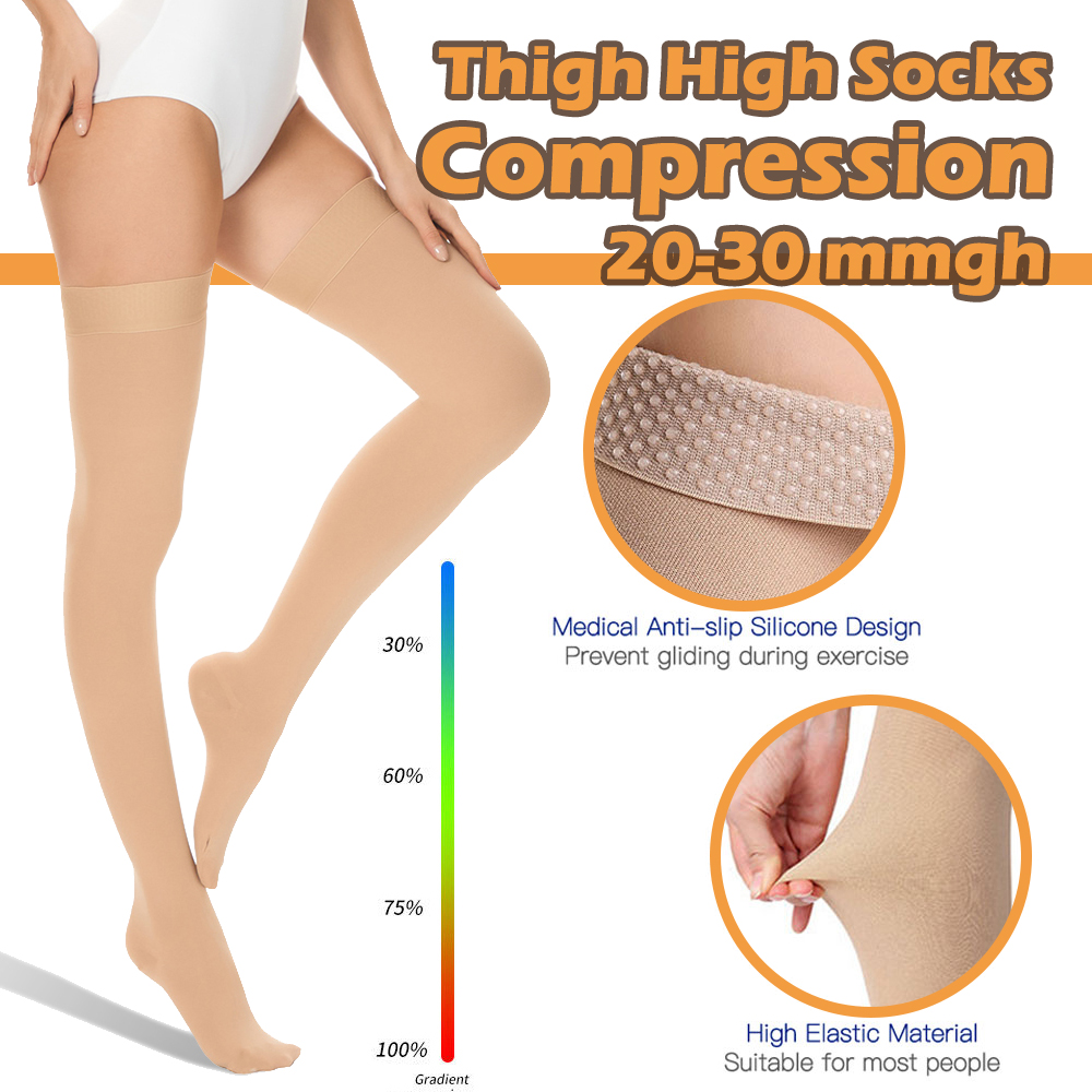 Package Includes: 1Pair Black /Beige Thigh High Compression Socks