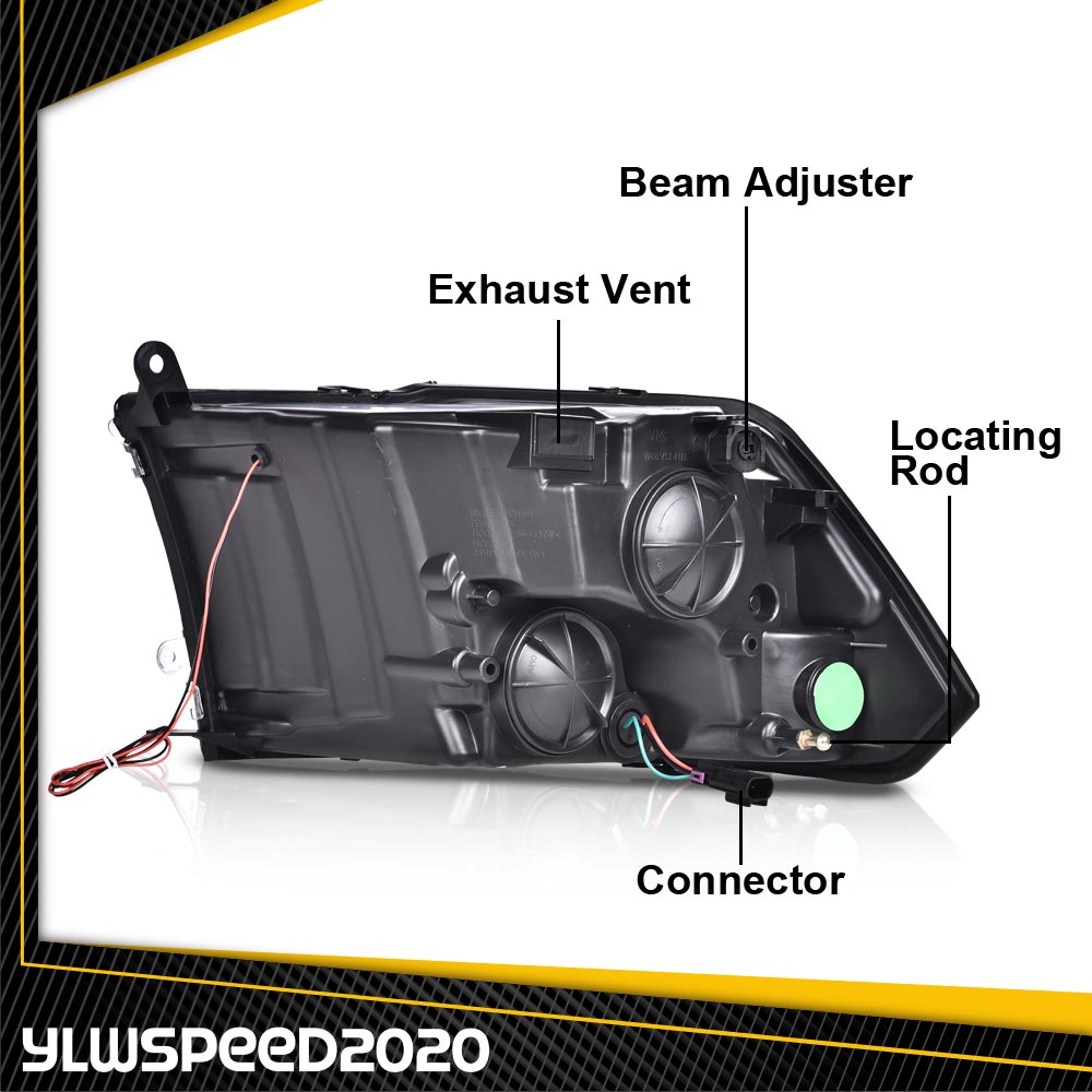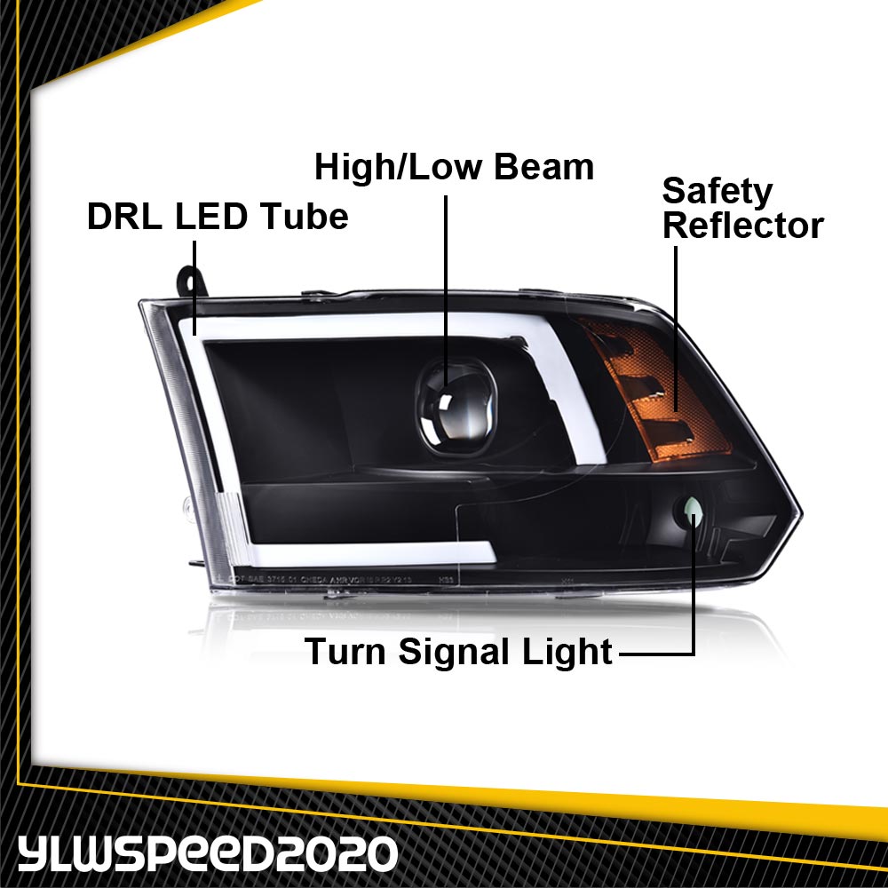 Fit For 09-12 Ram 1500 2500 3500 LED Tube Projector Headlights
