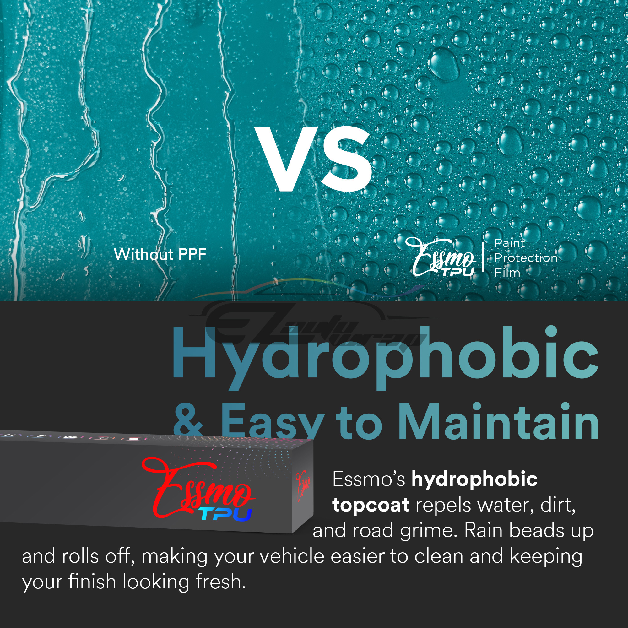 ESSMO’s Color PPF integrates a high-performance hydrophobic top layer that resists water, dirt, and contaminants. This self-cleaning surface helps maintain long-term clarity and gloss, reducing maintenance and keeping your finish looking freshly detailed.