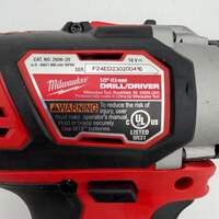 The Milwaukee M18 1/2 Drill Driver 2606-20 shows signs of previous use, with minor scuffs and wear on the body, but remains fully operational.
