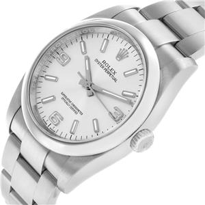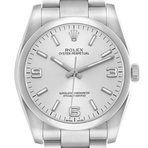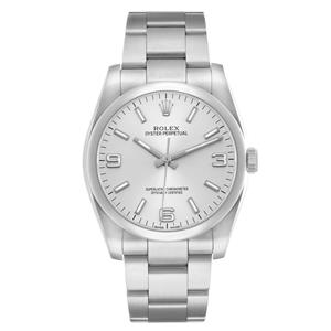 Stainless steel oyster case 36.0 mm in diameter. Rolex logo on the crown. |