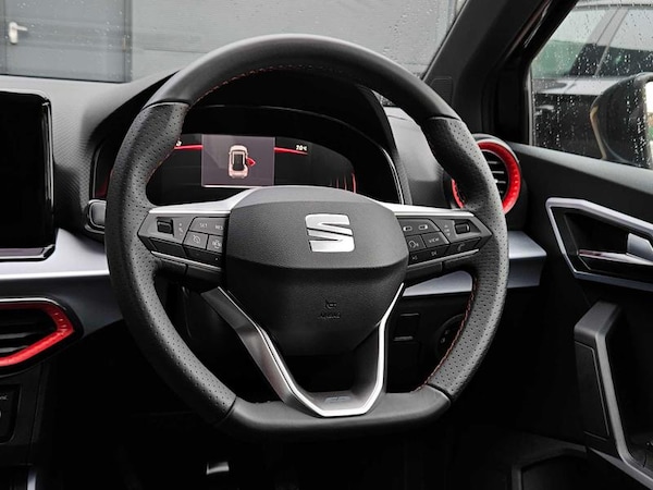 9.2in Navigation System, Bluetooth Audio Streaming with Handsfree System, Full Link Smartphone Integration, SEAT Connect - Safety - Service - Remote - Online, SEAT Connect Plus, Six Speakers, Wireless Phone Charger, Cruise Control with Speed Limiter, SEAT Drive Profile, Tiredness Recognition System, Tyre Pressure Monitoring System, 17in Alloy Wheels - Dynamic, Chrome Roof Rails and Window Surround, Contrast Roof, Dark Tinted Rear Windows, Electrically Adjustable Folding and Heated Door Mirrors, Emergency Tyre Repair Kit, Front and Rear Electric Windows, Locking Wheel Bolts, Protective Side Moulding, Rear Spoiler, Roof Coloured Door Mirrors, Twin Exhaust Pipe Styling - Hidden Exhaust Pipe, Coming and Leaving Home Headlight Function, Front Fog Lights with Cornering Function, Full LED Automatic Headlight, LED Rear Taillights, Aircare Filter, Auto Dimming Rear View Mirror, Black Interior Roof, Coloured Air Vent - Daring Red, Digital Cockpit - 8in, Double Boot Floor, Dual Zone Climate Control, Front Courtesy Light with Front Reading Lights, Height Adjustable Front Seats, Illuminated Air Vent Surrounds, Interior Ambient Light, Interior Chrome Pack, Interior Light in Footwell - Centre Console and Door Panel, Perforated Leather Flat-Bottomed Steering Wheel with Red Stitching and FR Logo with Leather Gear Knob and Handbrake, Rain Sensing Wipers, Rear Fog Light, Split Folding Rear Seats - 60-40, Sunvisors with Mirror and Cardholder - Driver Side, Titan Black Dashboard, Two Front and Three