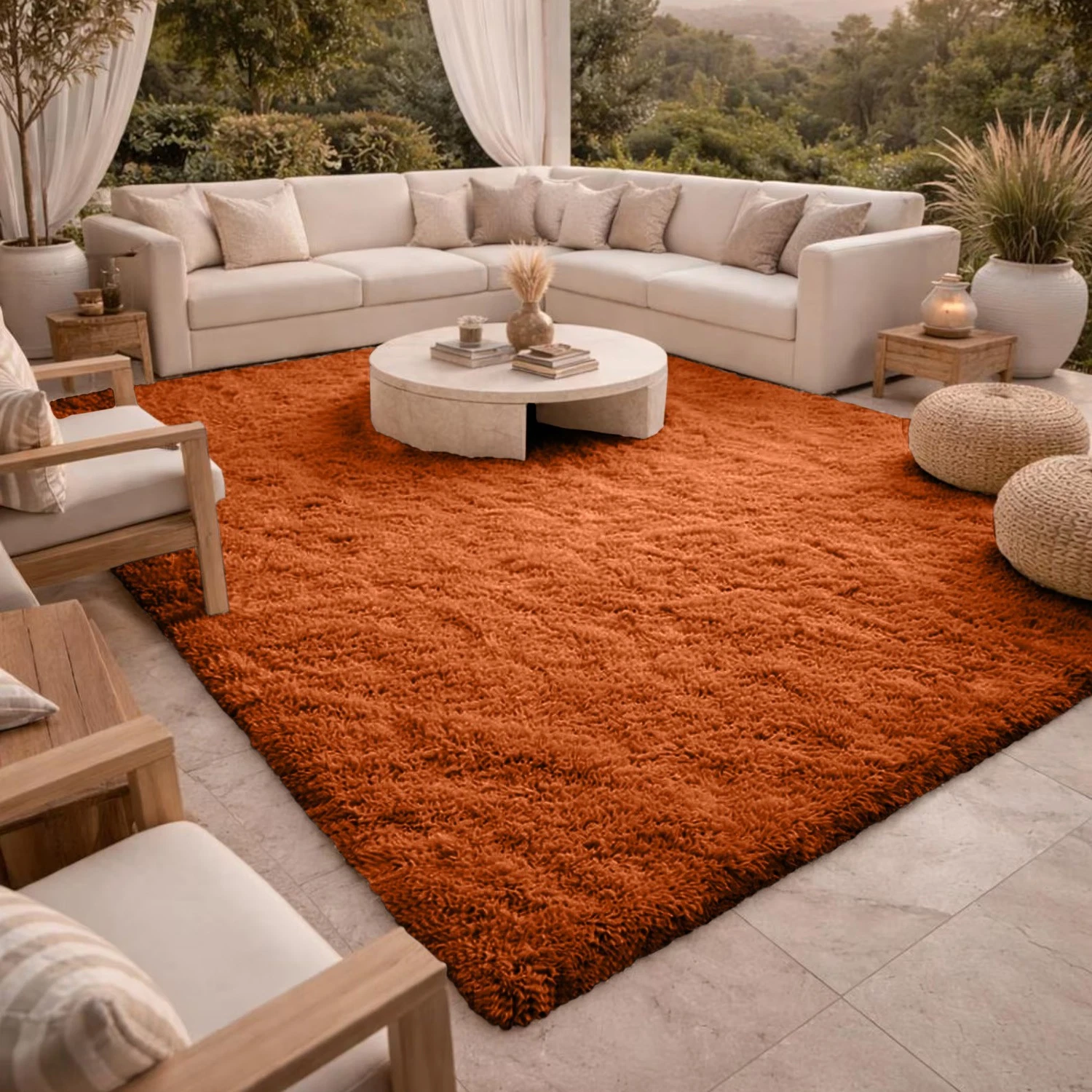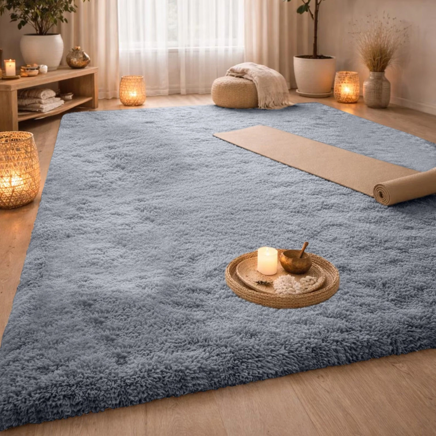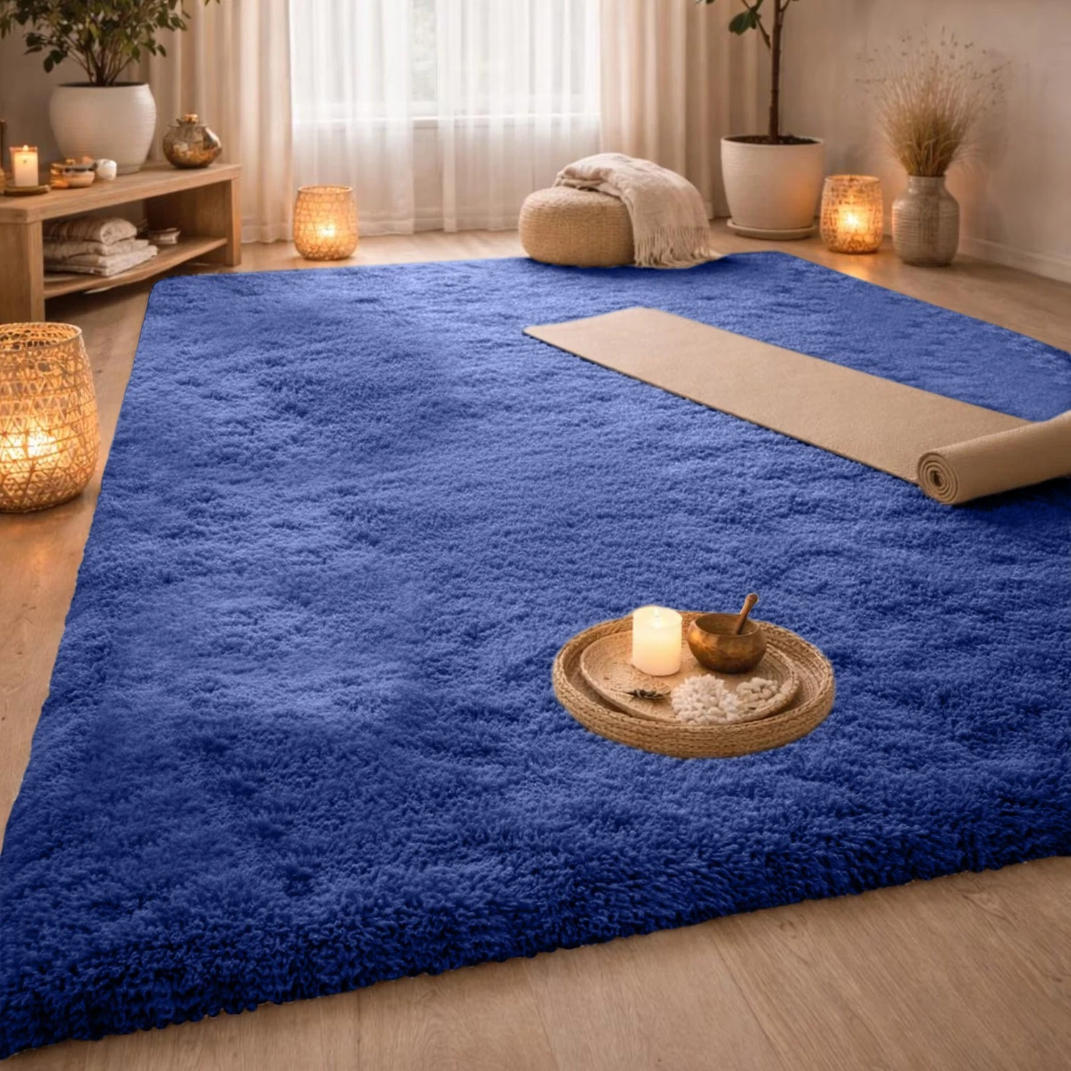 Fluffy rugs can add visual interest, contrast, and dimension to any space, as they create a dynamic and modern look. Shaggy rugs can also complement various styles of decor, such as contemporary minimalist, bohemian, or eclectic. This is the most sophisticated and luxurious type of rug we have. Its Material is 100% polypropylene. For longevity, the rug's length is sewn, and its breadth is folded and attached. A rug that is incredibly practical for a busy indoor or outdoor home or office with children, pets, and guests, as well as for high-traffic areas like the kitchen, near the sink or stove, the living room, dining room, teen room, guest room, nursery room, TV room, kids room, entrance, dorm room, bedroom, family room, staircase, foyer, and entryways. These Shaggy rugs came in different sizes, colors, materials, and designs. You can choose a geometric rug that suits your preference and needs, depending on the size of your room, the color scheme of your furniture and walls, the texture and durability of the rug material, and the design and complexity of the rug pattern. You can also mix and match different Fluffy rugs to create a unique and creative layout.