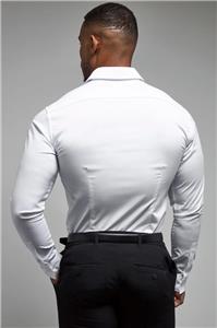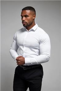 Crafted from premium stretch fabric and cut to our signature True Muscle Fit, it highlights your shape without restricting movement. The design broadens the chest and shoulders while tapering cleanly at the waist, creating a sharp, masculine profile. Minimal detailing and sleek lines give it a modern, refined edge. The perfect Shirt from the office to a date night, or any moment you want to own the room.