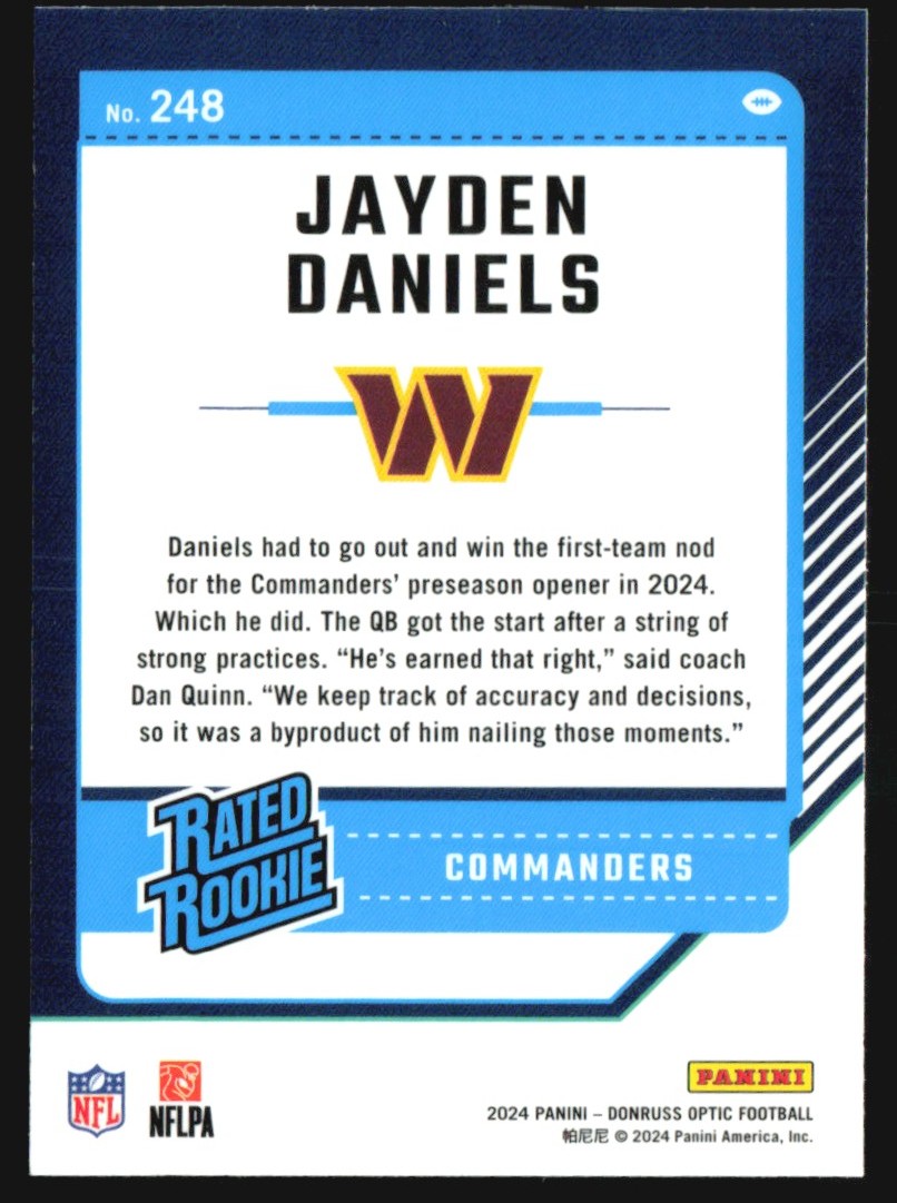 | 2024 Donruss Optic Jayden Daniels Rookie #248 BG6-3 |