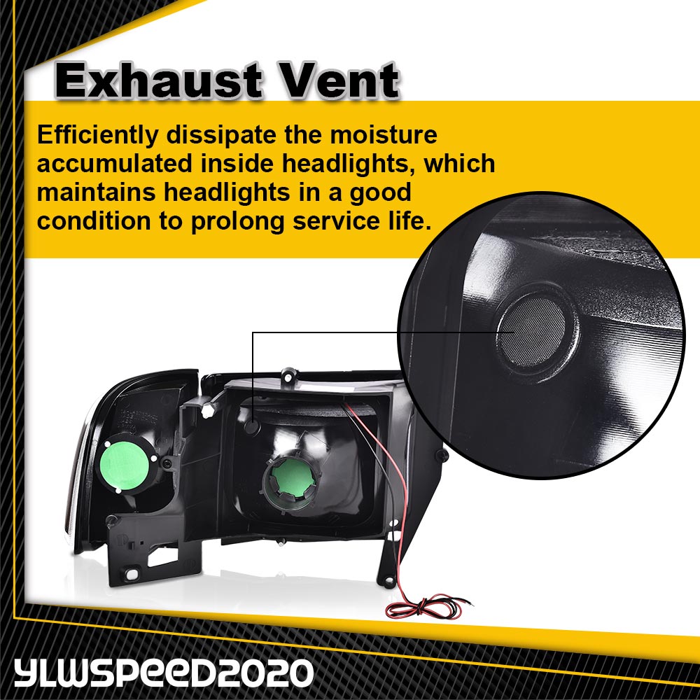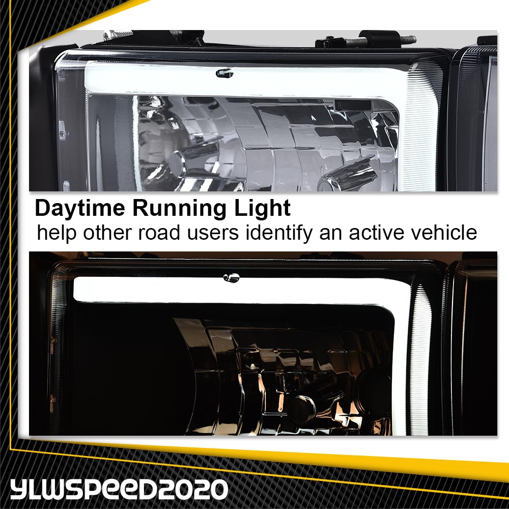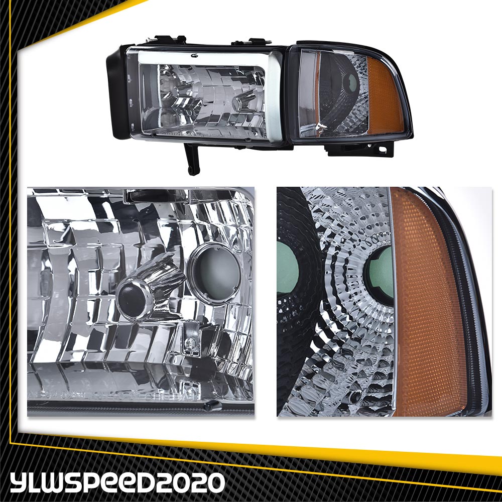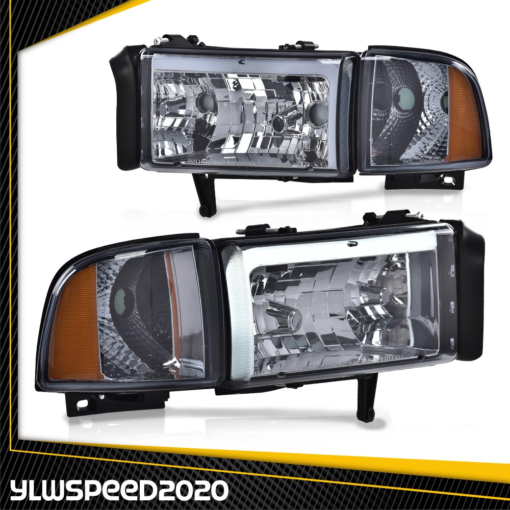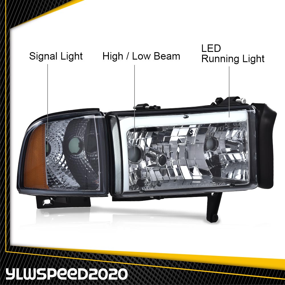 PRODUCTFit For 1994-02 Dodge Ram 1500 2500 3500 LED Tube DRL Headlights Lamp Smoke Lens