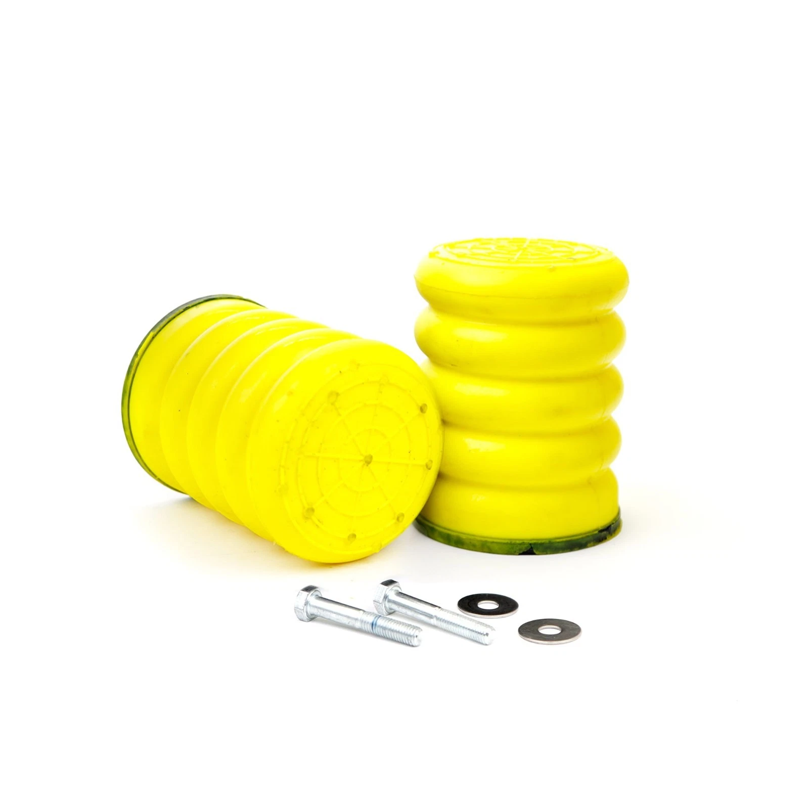 SumoSprings are a patented suspension product designed to enhance load carrying ability, stabilize sway, and improve overall driver control and ride comfort. They are maintenance free, do not leak air, and do not require airlines or compressors. SumoSprings are manufactured in a variety of heights, diameters and densities to support multiple front and rear applications. They are manufactured from proprietary closed micro-cellular urethane providing a smooth and progressive spring rate with superior damping properties. Every SumoSpring is handmade with care, making each one unique with its own natural characteristics, such as slight color variations and surface bubbles—proof of the craftsmanship that goes into every piece.