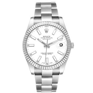 Stainless steel oyster case 41.0 mm in diameter. Rolex logo on the crown.