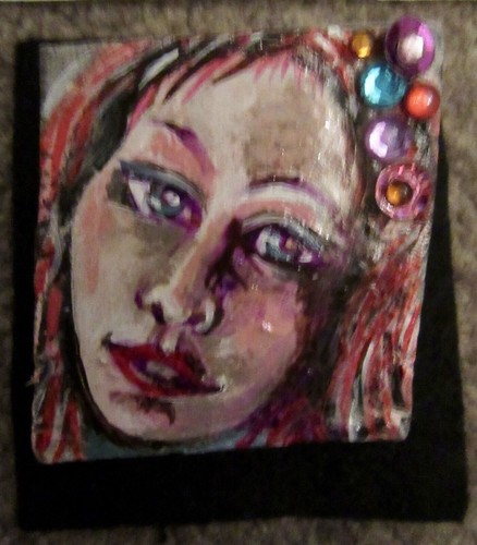 ANGELA READING : New Zealand artist. Painting on Brooch with Bead Decorations.