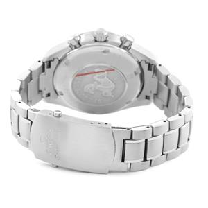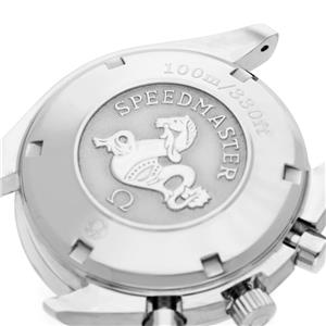 Stainless steel round case 40.0 mm in diameter. Two pushers operate the chronograph functions. Omega logo on the crown. |