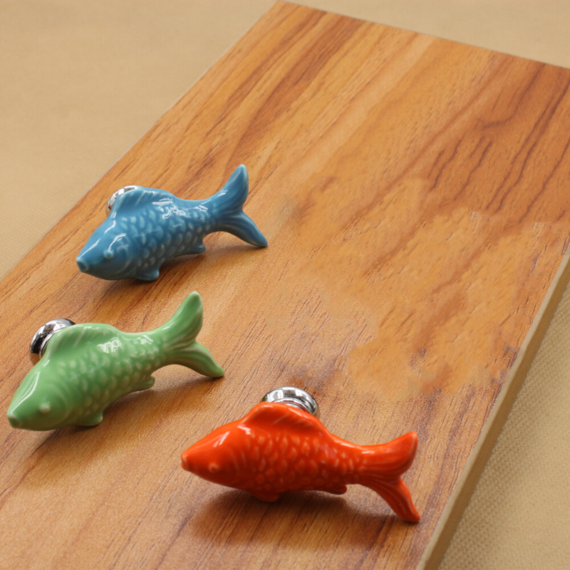 2pcs Cute Ceramic Fish Shape Knobs Drawer Wardrobe Cabinet Door Handle Decors