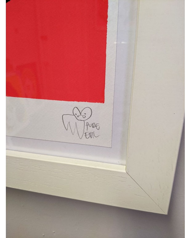 Signed, numbered and framed by Pure Evil in Pure Evil's distinctive chunky oversized frame.