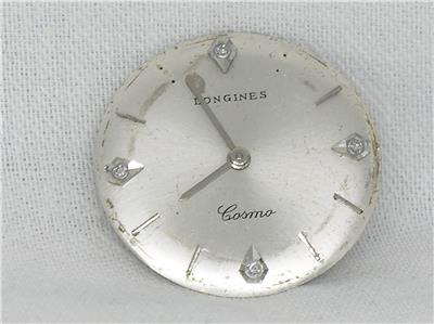 THE PICTURES ARE A LARGE PART OF THE DESCRIPTION HERE, SO LOOK AT THE PHOTOS CAREFULLY. VINTAGE, DIAMOND-STUDDED LONGINES CALIBER 428 MANUAL WOUND MOVEMENT, A 17-JEWEL CALIBER FOUND IN LONGINES VINTAGE WATCH MODELS FROM THE 1960'S. MANUAL WIND MOVEMENT. THE BALANCE SWINGS FREELY AND THE STAFF, MAINSPRING, AND TRAIN ARE OK. GUMMY BUT RUNNING WHEN SHAKEN. MANUAL WINDING IS WORKING PROPERLY AND SETTING OPERATES PROPERLY WITH YOUR CROWN & STEM . SOLD FOR PARTS OR REPAIR. DIAL DIAMETER 26MM. HANDS ARE ALL INTACT AND SPOTLESS TOO.