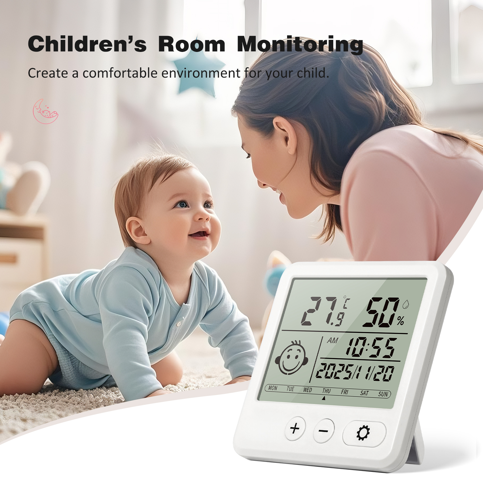 Präzise und schnelle Messung: Das Raumthermometer misst die Luftzirkulation durch die Lüftungsöffnungen und liefert Ihnen schnell und präzise Messdaten. Es misst Temperaturen von -50 °C bis 70 °C und die relative Luftfeuchtigkeit von 10 % bis 99 %. So können Sie Heizung oder Luftbefeuchter anhand der Messwerte anpassen.
