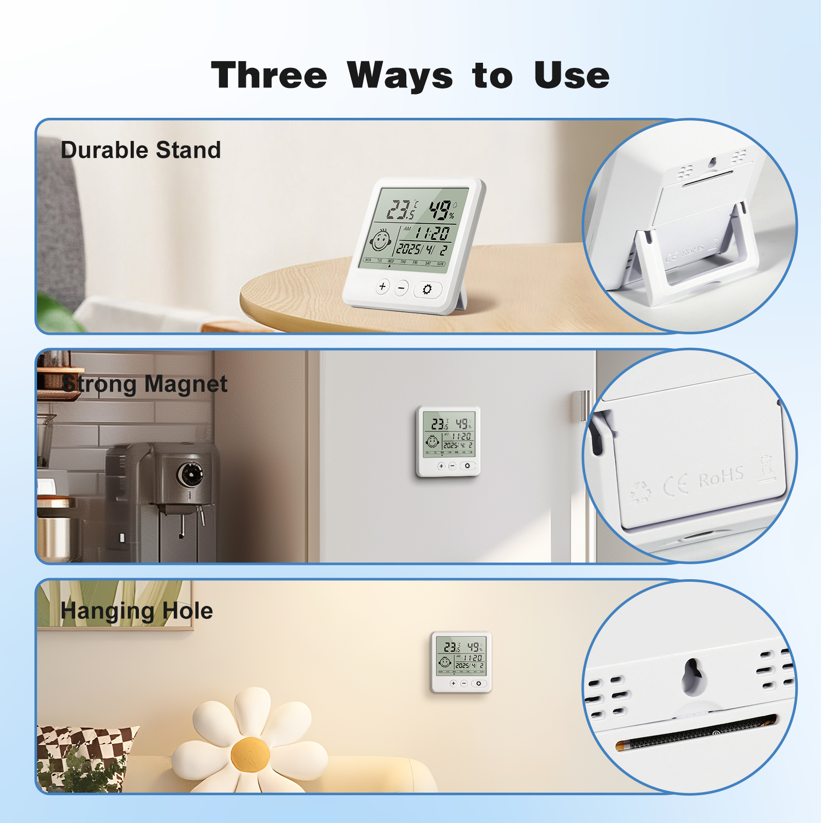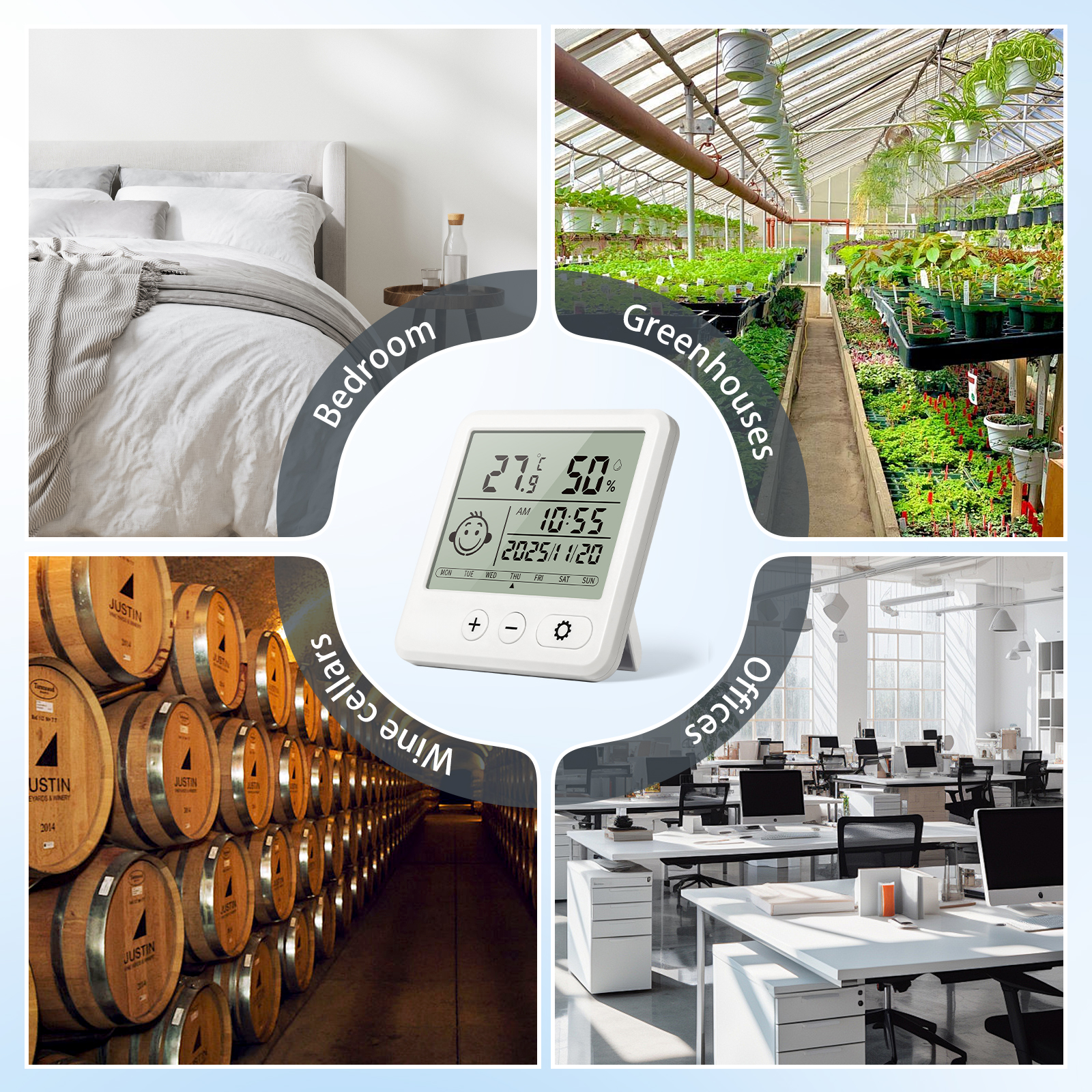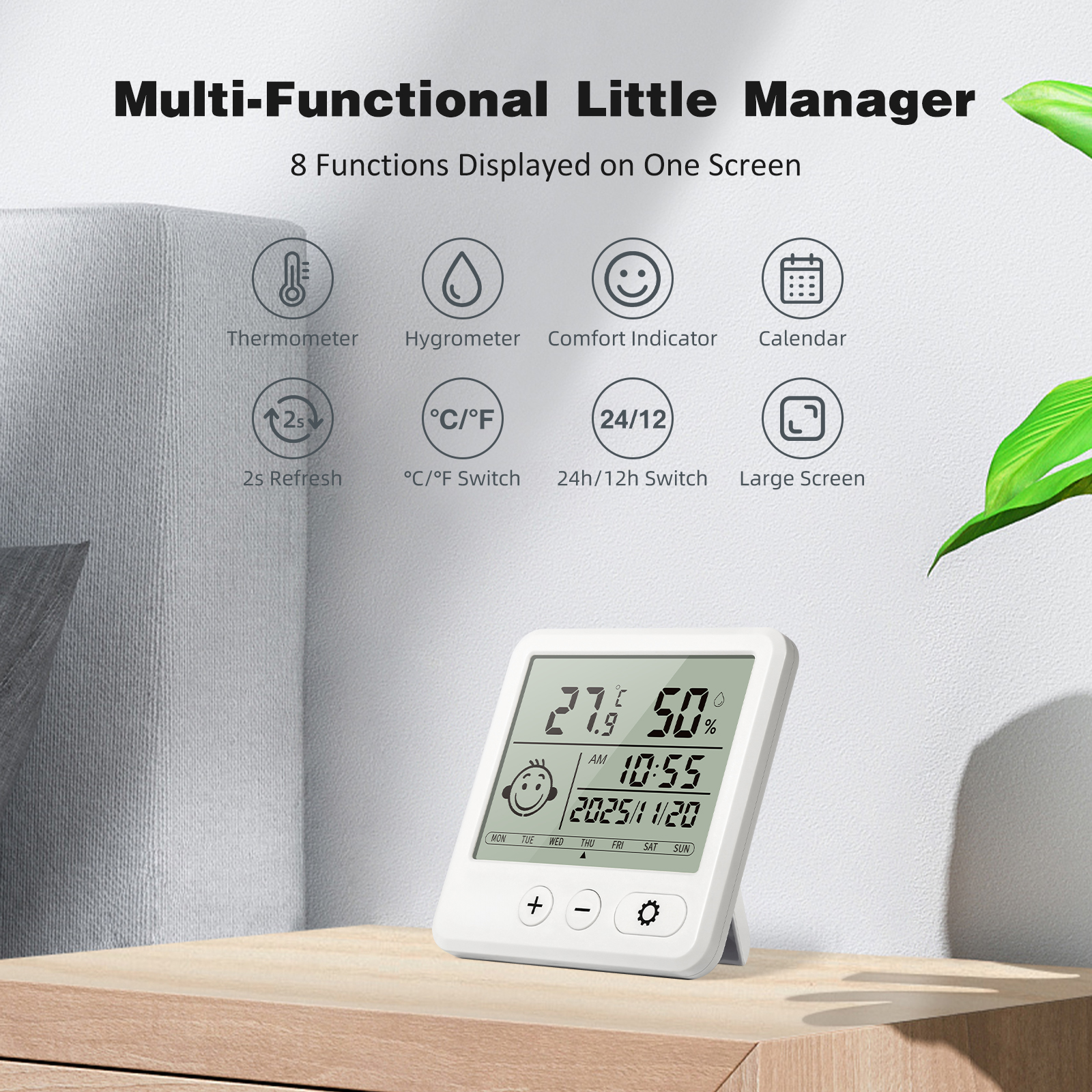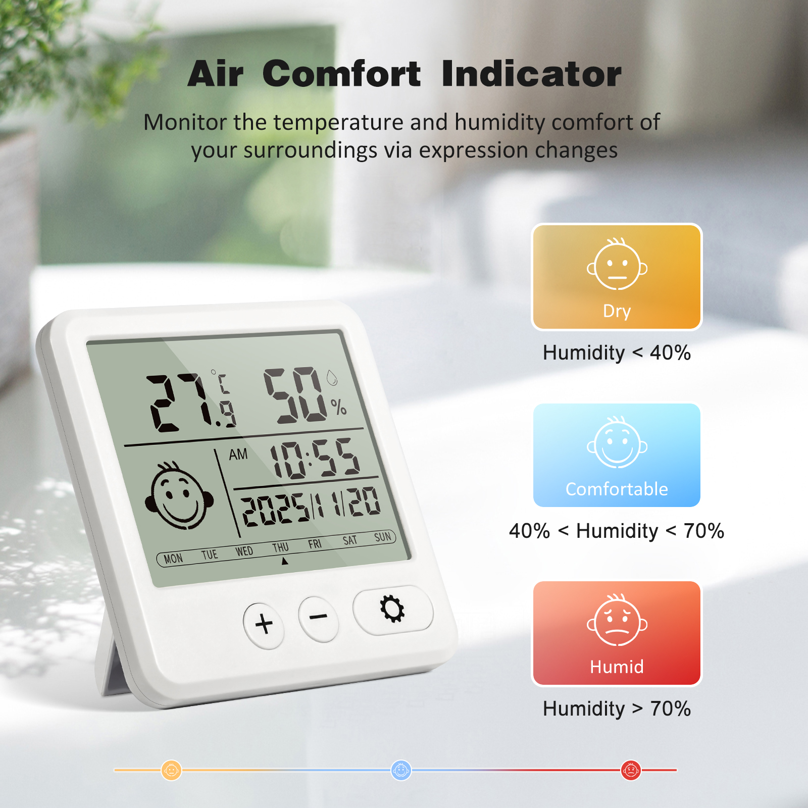 Über diesen Artikel Komfortanzeige: Das Raumthermometer verfügt über drei verschiedene Symbole, die unterschiedliche Temperatur- und Luftfeuchtigkeitswerte gleichzeitig anzeigen. So haben Sie Ihre Gesundheit und Ihr Wohlbefinden zu Hause immer im Blick: feucht, angenehm, trocken – alles auf einen Blick.