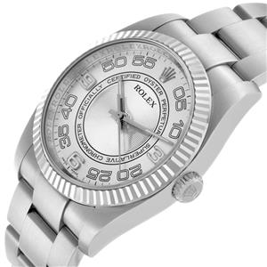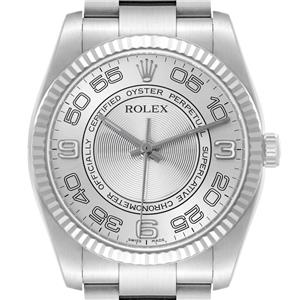 Stainless steel case 36.0 mm in diameter. Rolex logo on a crown. |