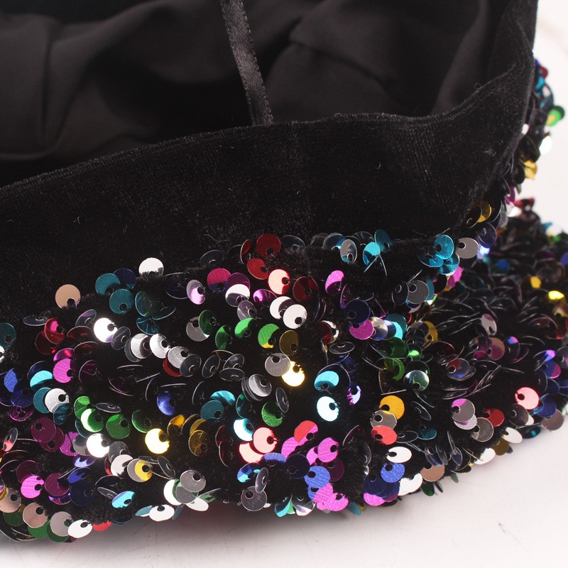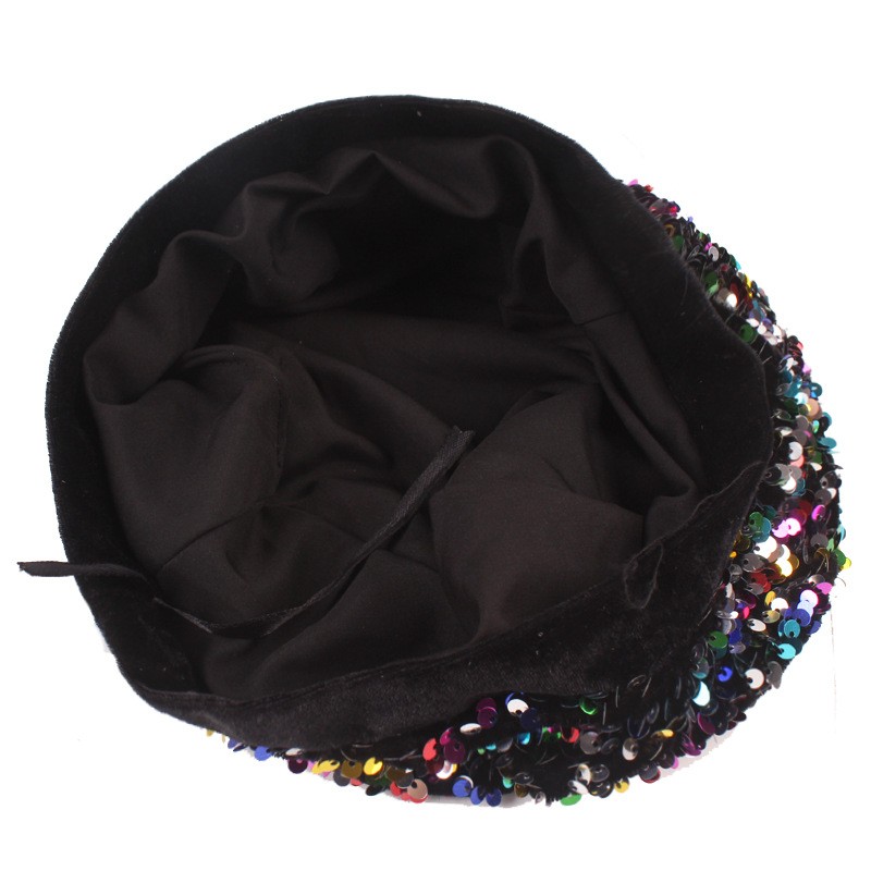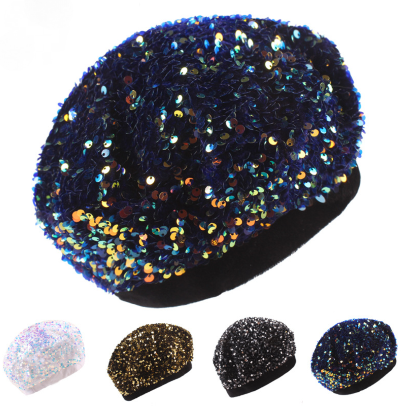 Women Fashion Sequin Painter Beret Hat Stretchy Performance Party Beanie Cap
