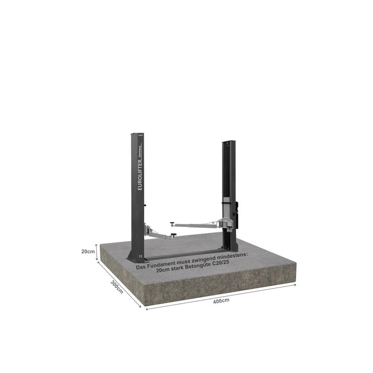 Den genauen Fundamentplan bekommen Sie zusammen mit Ihrer Hebebühne als