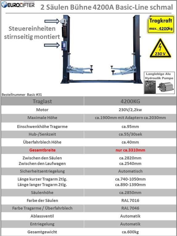 2 Säulen Hebebühne 4200kg Automatik in 230 V