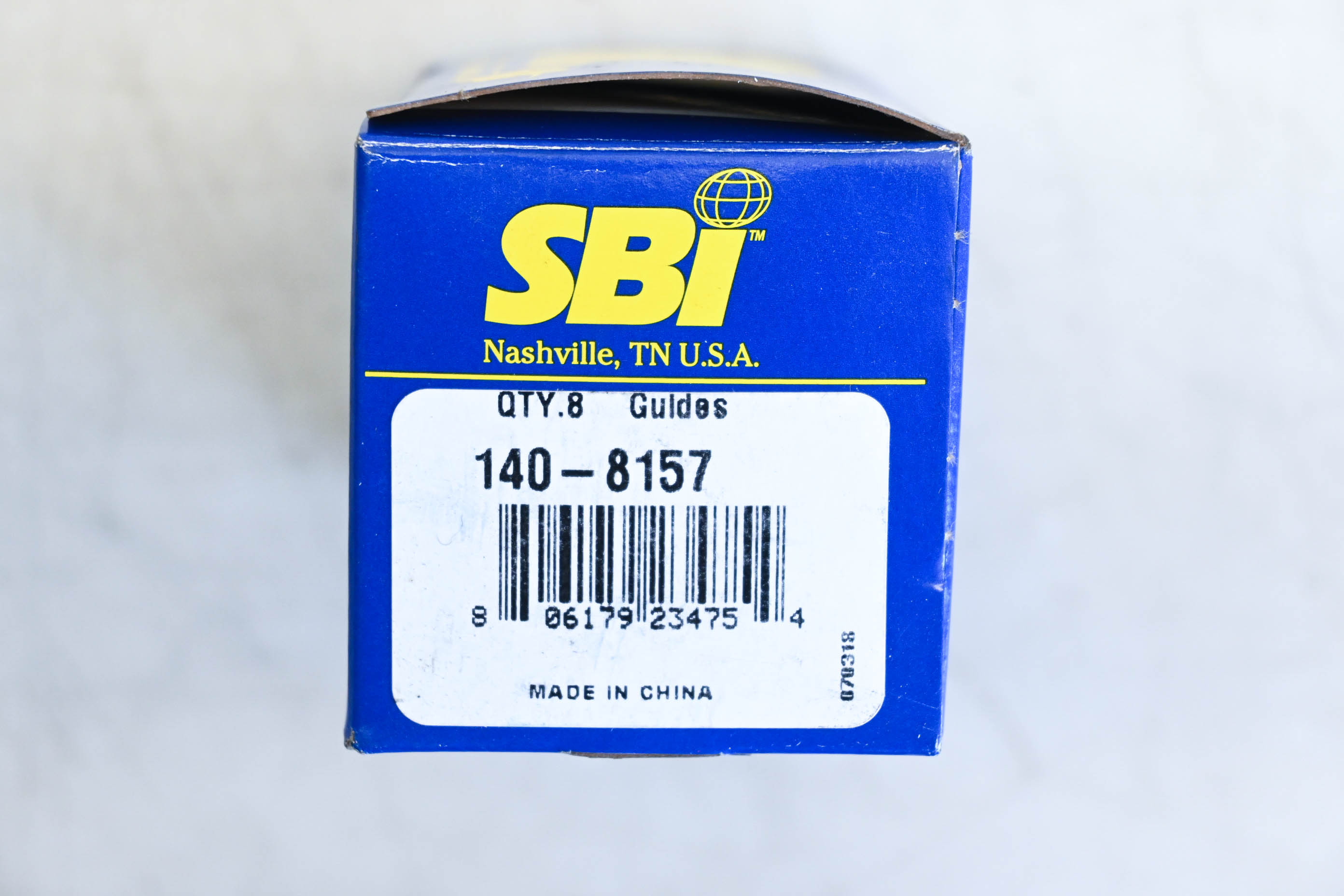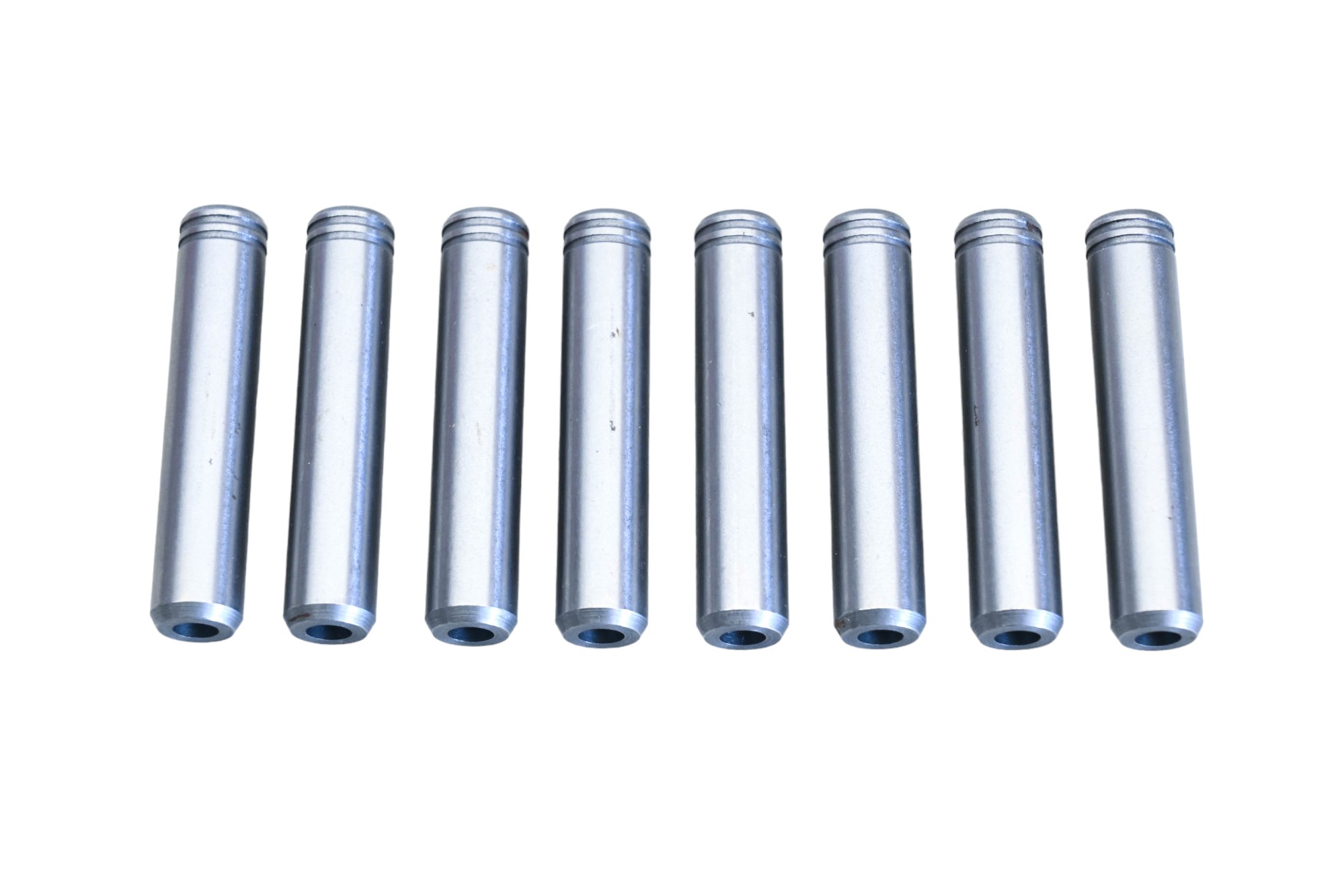 8 Valve Guides are new and in good condition, in original packaging. Shows signs of shelf wear. Rust present.
