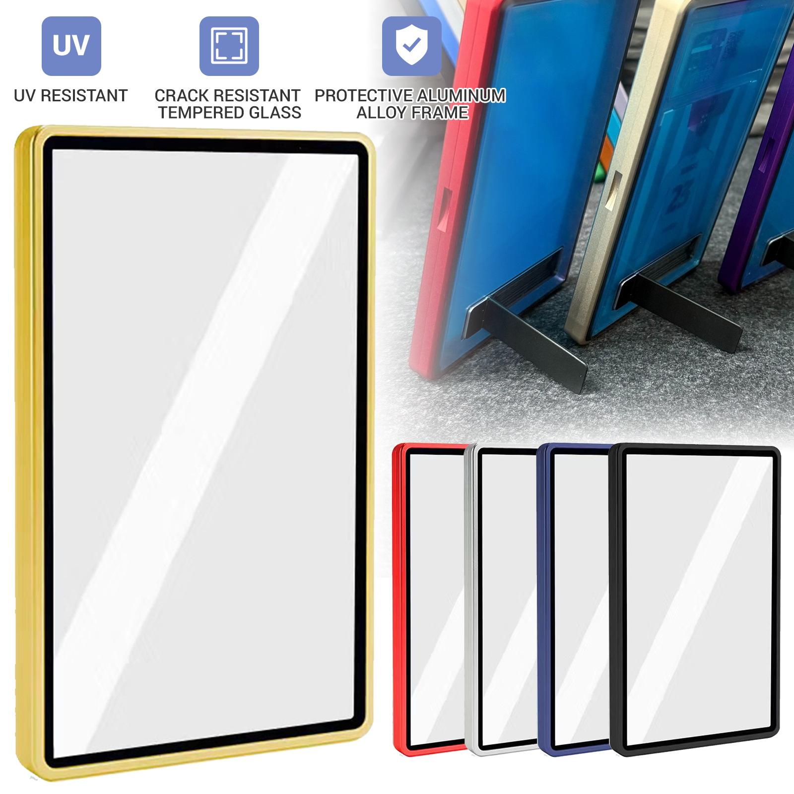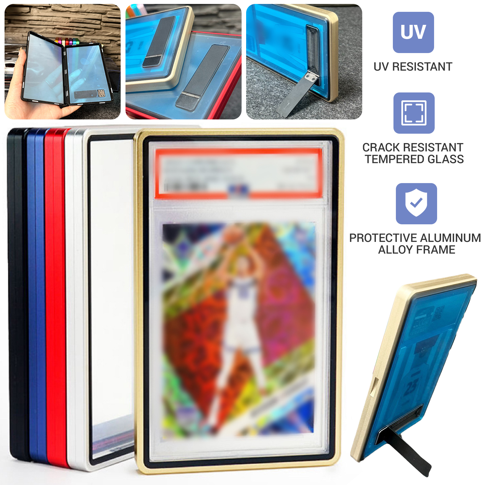 The display frame is specifically designed with a stable base that will not accidentally tip over easily like other stands. The built-in hidden stand on the back allows this protective case to serve as a display stand, making it easy to showcase your valuable collections.