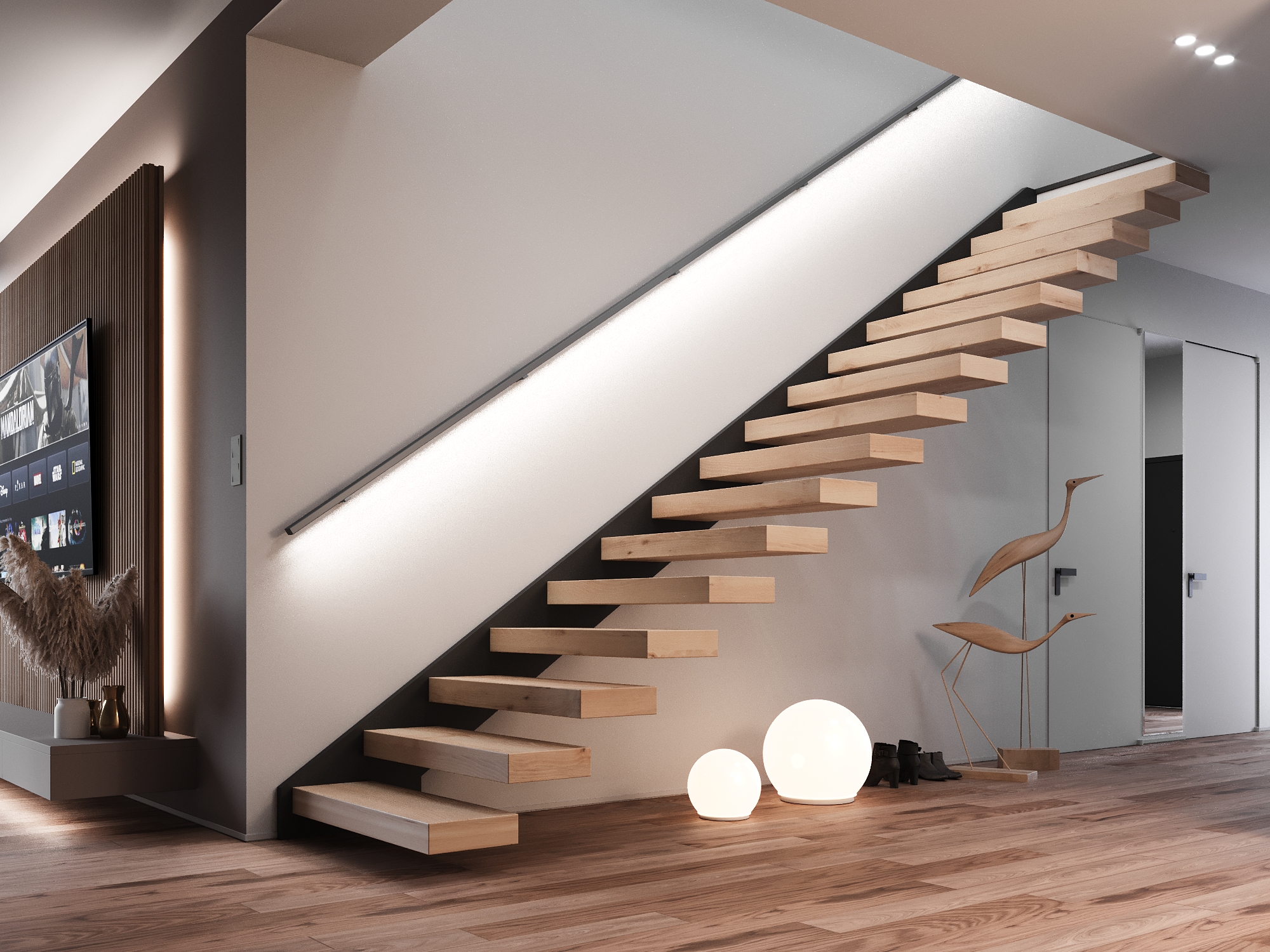 Distancia del soporte de pared: 25 cm desde el principio y el final del pasamanos, los demás soportes de pared uniformemente según la longitud.