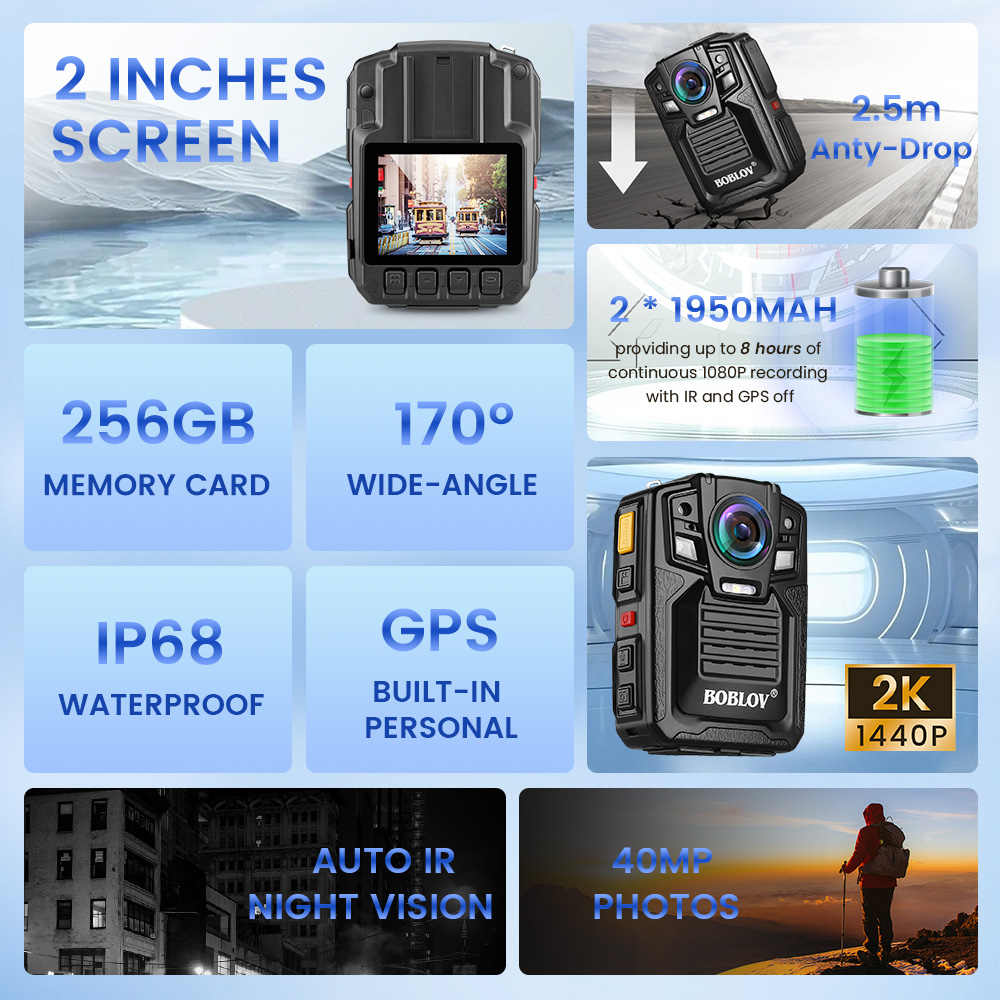 BOBLOV Large Storage & Loop Recording police body camera, 256GB storage enough for all your video, picture and audio recordings