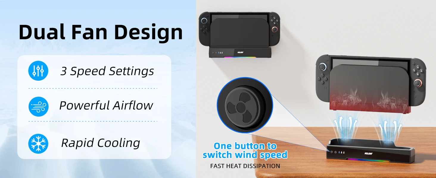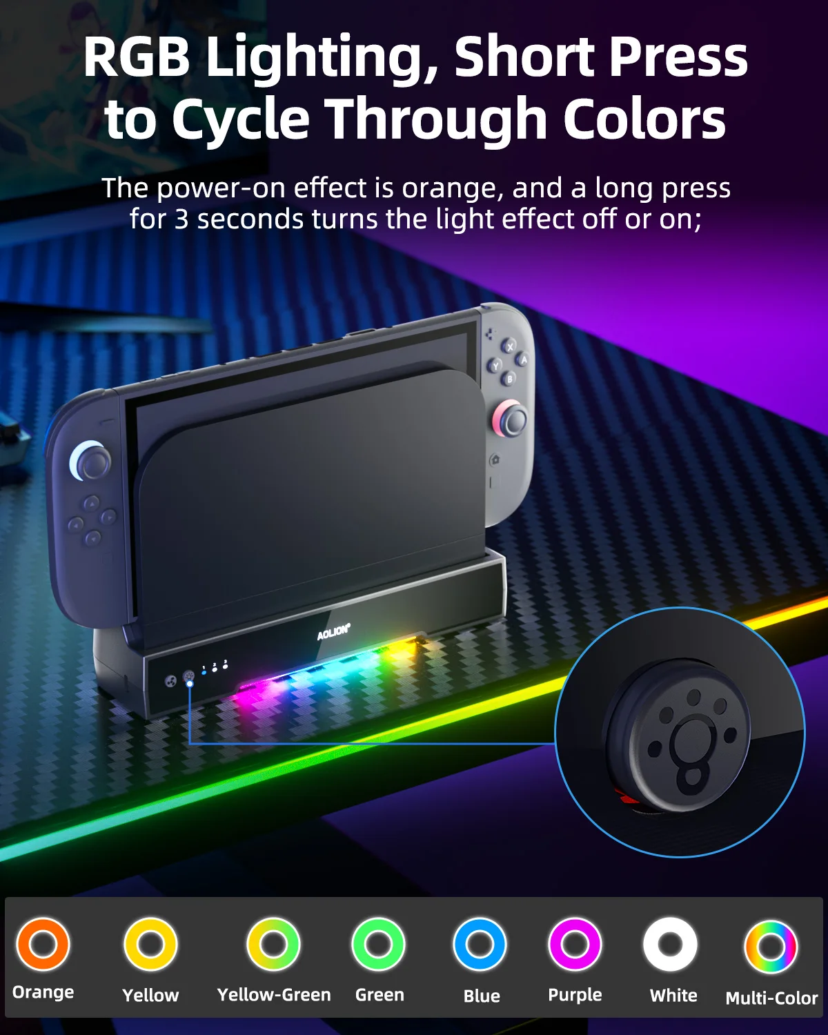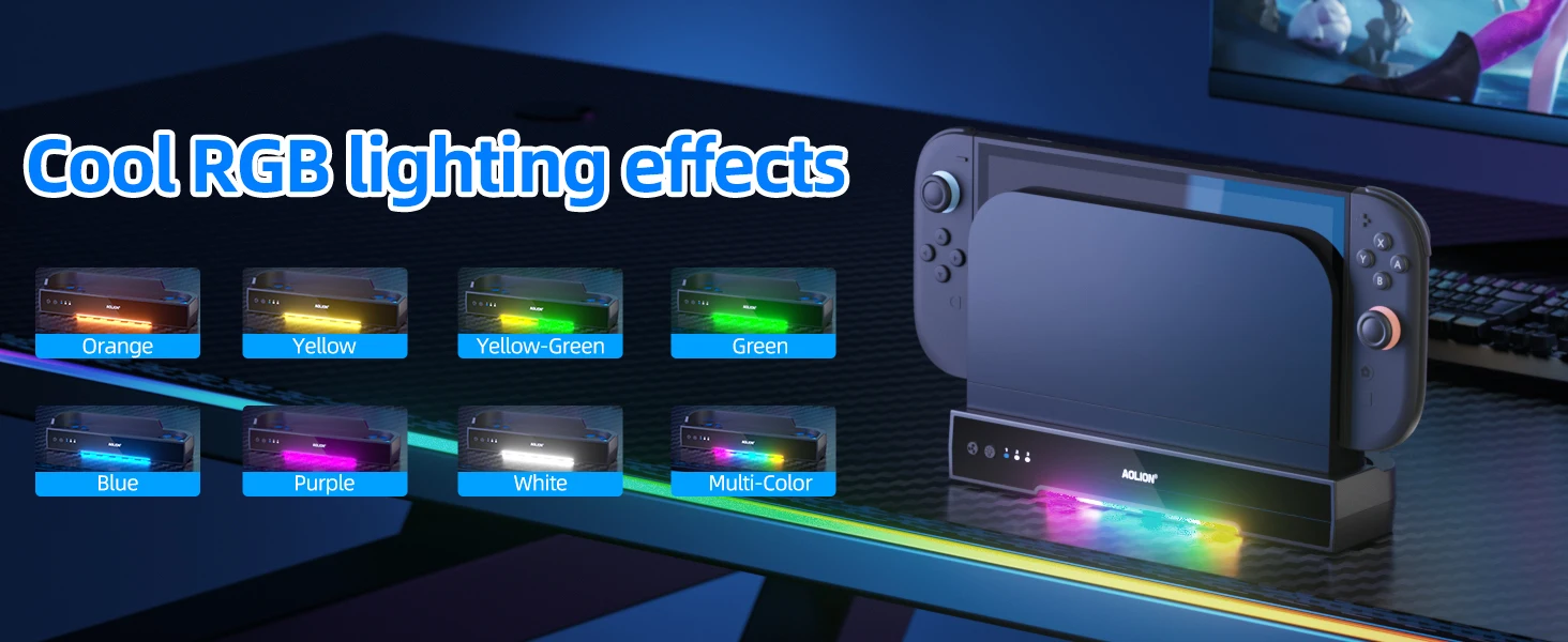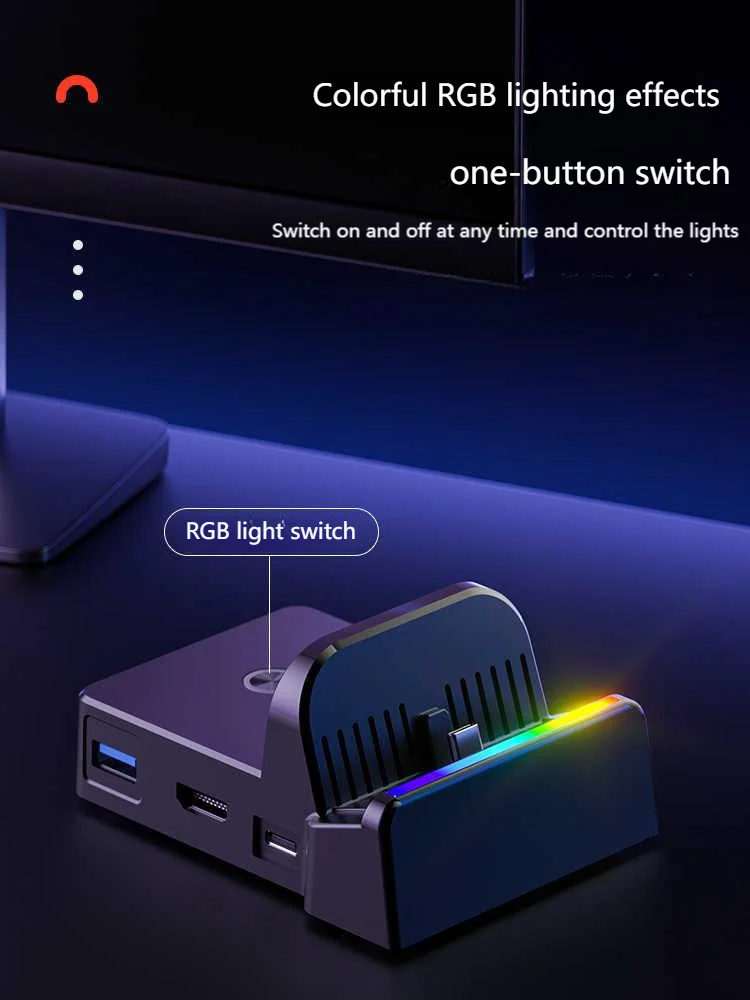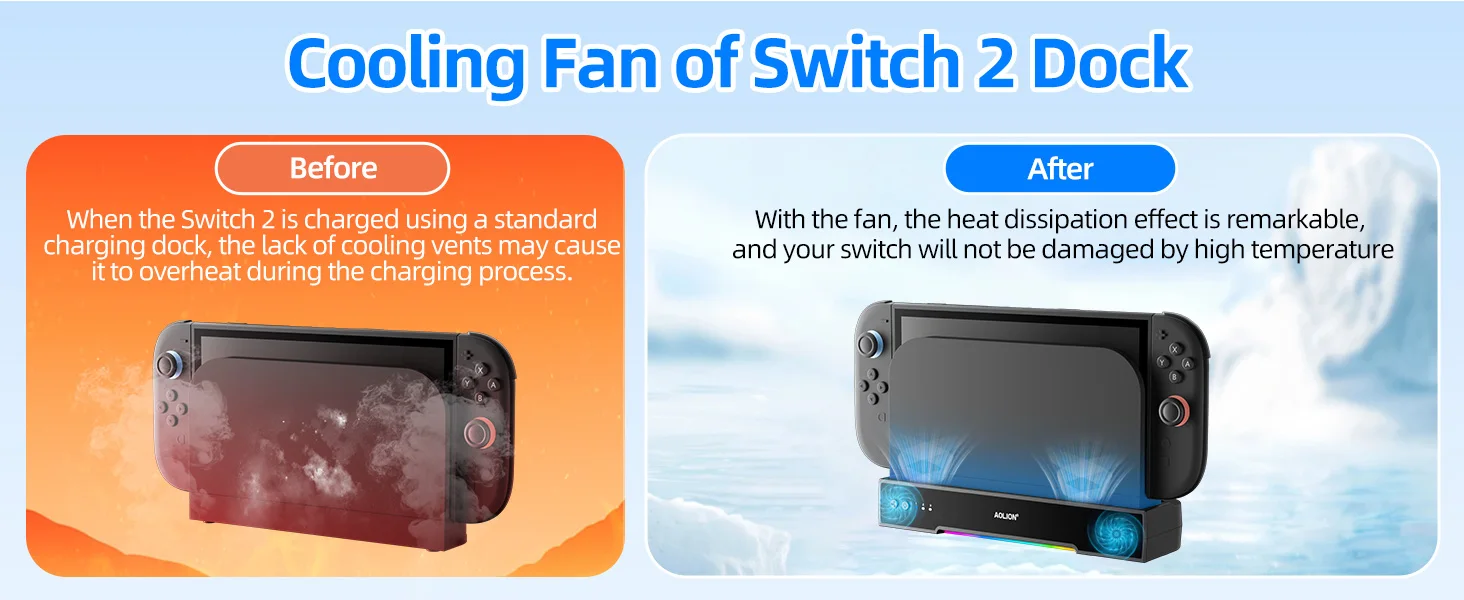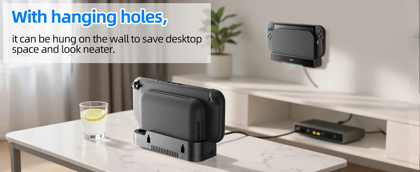 for Switch 2 Dock RGB Cooling Fan Portable HUB Expansion Base Wall Mount with NGC for Switch 2 Accessories