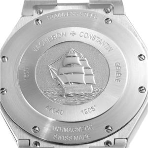 Stainless steel round case 42.0 mm in diameter. Vacheron Constantin logo on the screwed-down crown. Solid case back with 'overseas' medalion. |