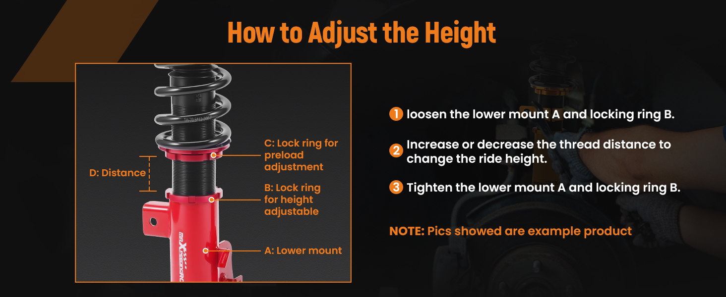 - Independent ride height adjustable: Easily adjust the height of your ride! This coilover also allows for height and preload adjustments. This means you can reach optimal suspension tuning while maintaining a stable, comfortable ride at all times.