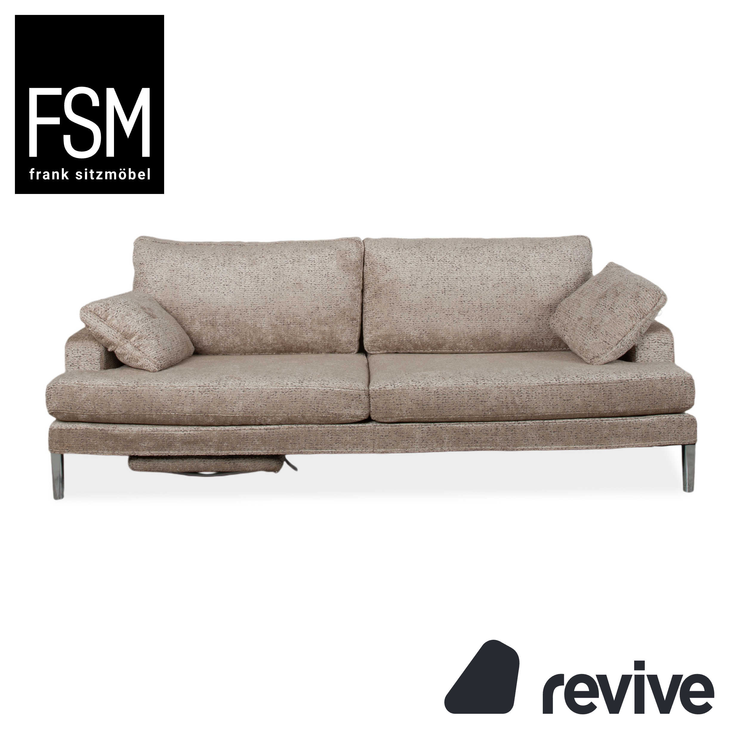 The FSM Clarus sofa impresses with its timeless, light look and clear lines. The high-quality fabric cover in a mottled gray-beige gives the three-seater a natural warmth and makes it a versatile combination partner for modern living spaces.
