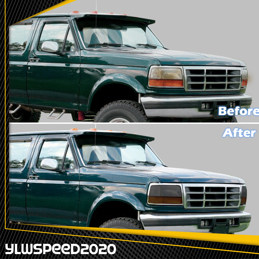PRODUCT1 Pair Headlights Lens Cover Smoked Fit For 1992-1996 Ford F150 F250 F350 Bronco