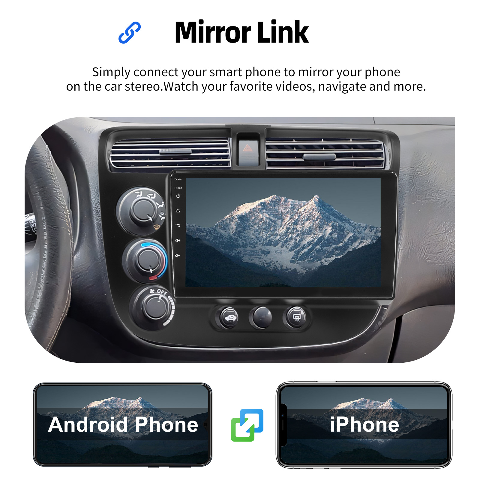MIRROR LINK: With this car radio, you can experience the amazing Mirror Link function, compatible with iOS and Android phones. You can mirror your smartphone screen to the car radio using apps like Google Maps, Spotify, Youtube, etc. Replace your cell phone with the car screen and turn your vehicle into a smart platform.
