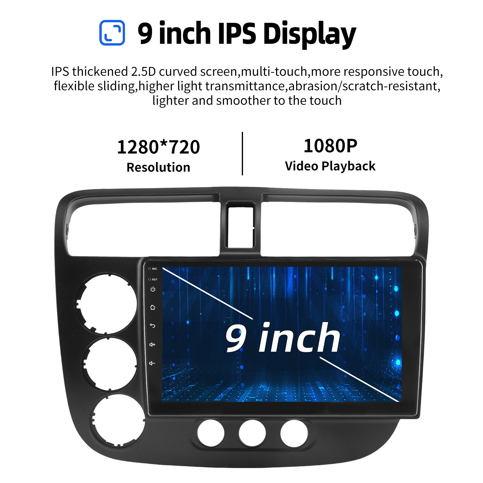 Screen: 9 Inch 1280x720 HD capacitive touch screen