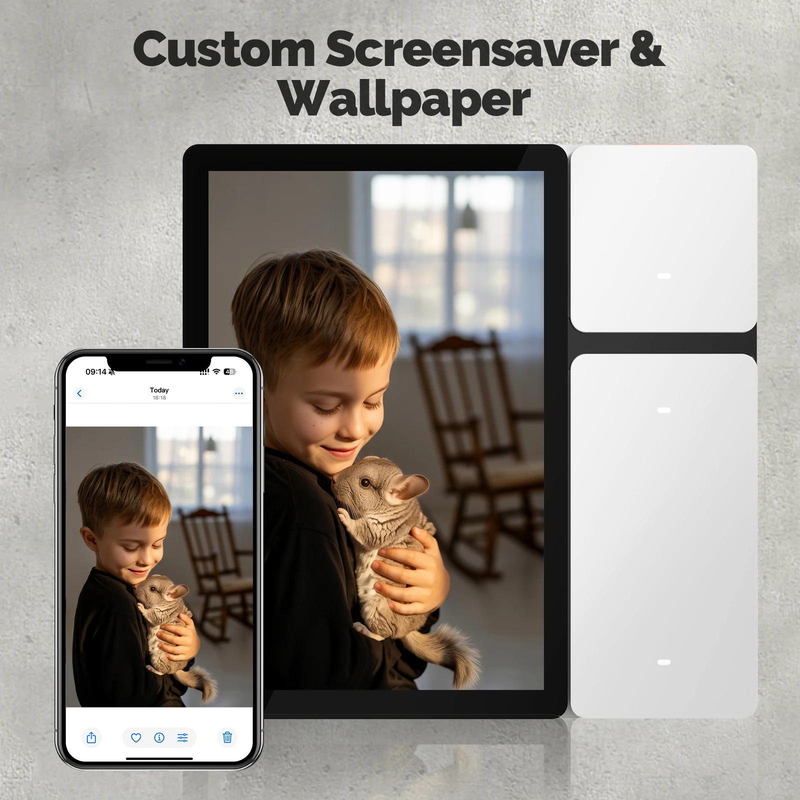 The central control panel comes with multiple themes and screen savers of different styles to choose from. You can choose according to your preferences and home decoration style. The screen saver supports sliding show to add color to your home.