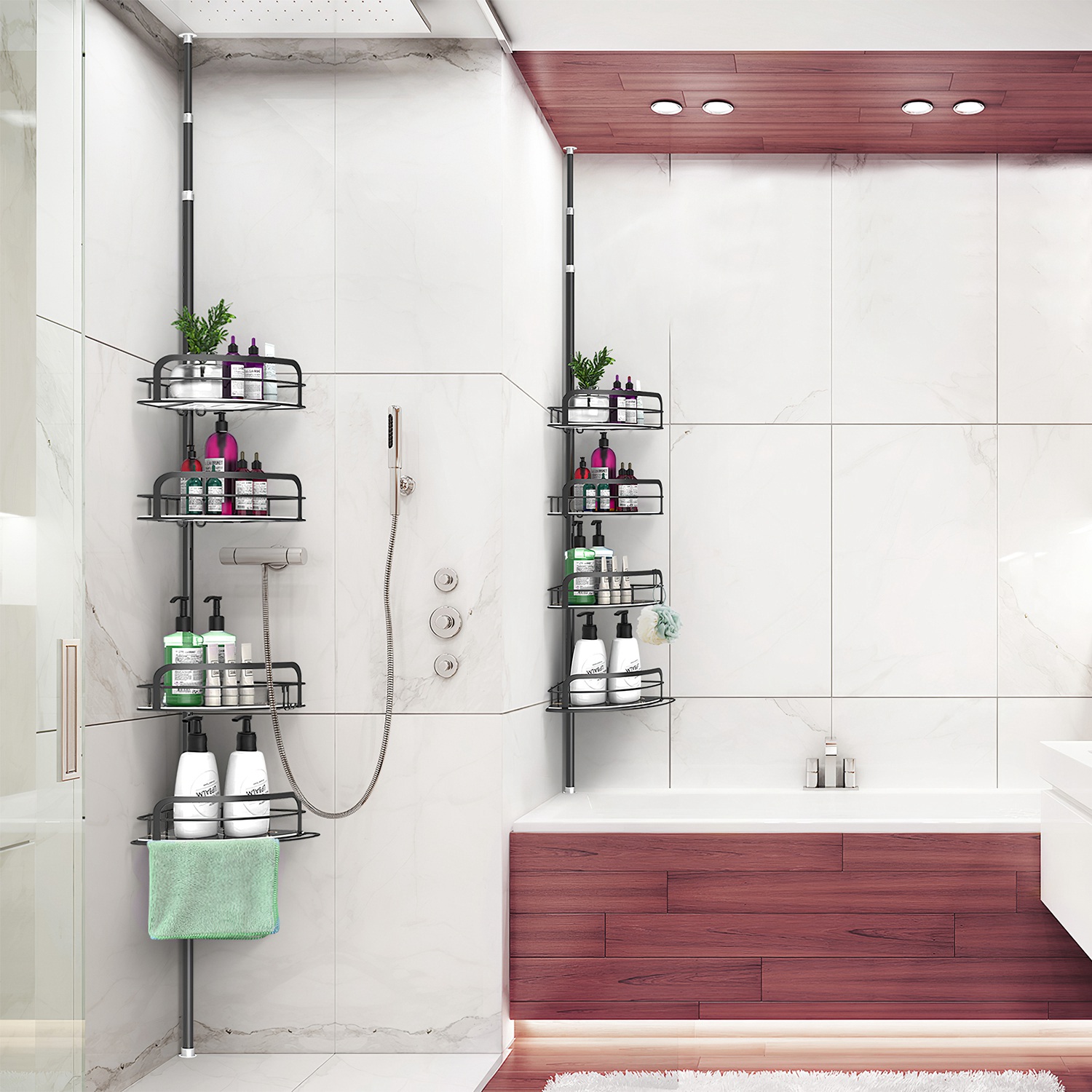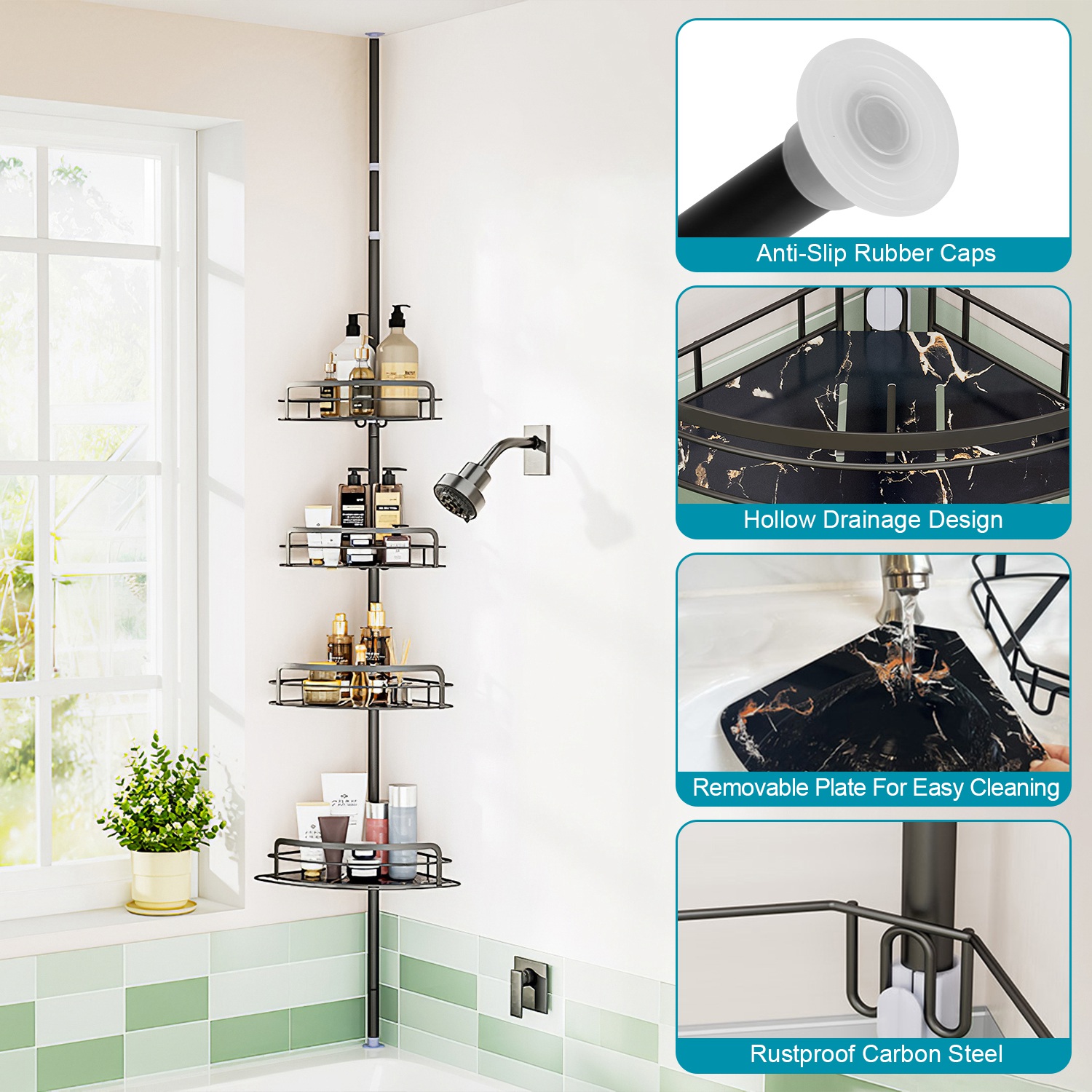 Keep Your Bathroom Well-Organized:This space-saving floor-to-ceiling corner shower caddy with 4 shelves effectively utilizes the often-neglected corner space,maximizing the available storage area and keeping your bathroom essentials in well organized. Additionally,this standing corner storage rack can be also used for corner of kitchen,closet,bathtub,RV and so on.