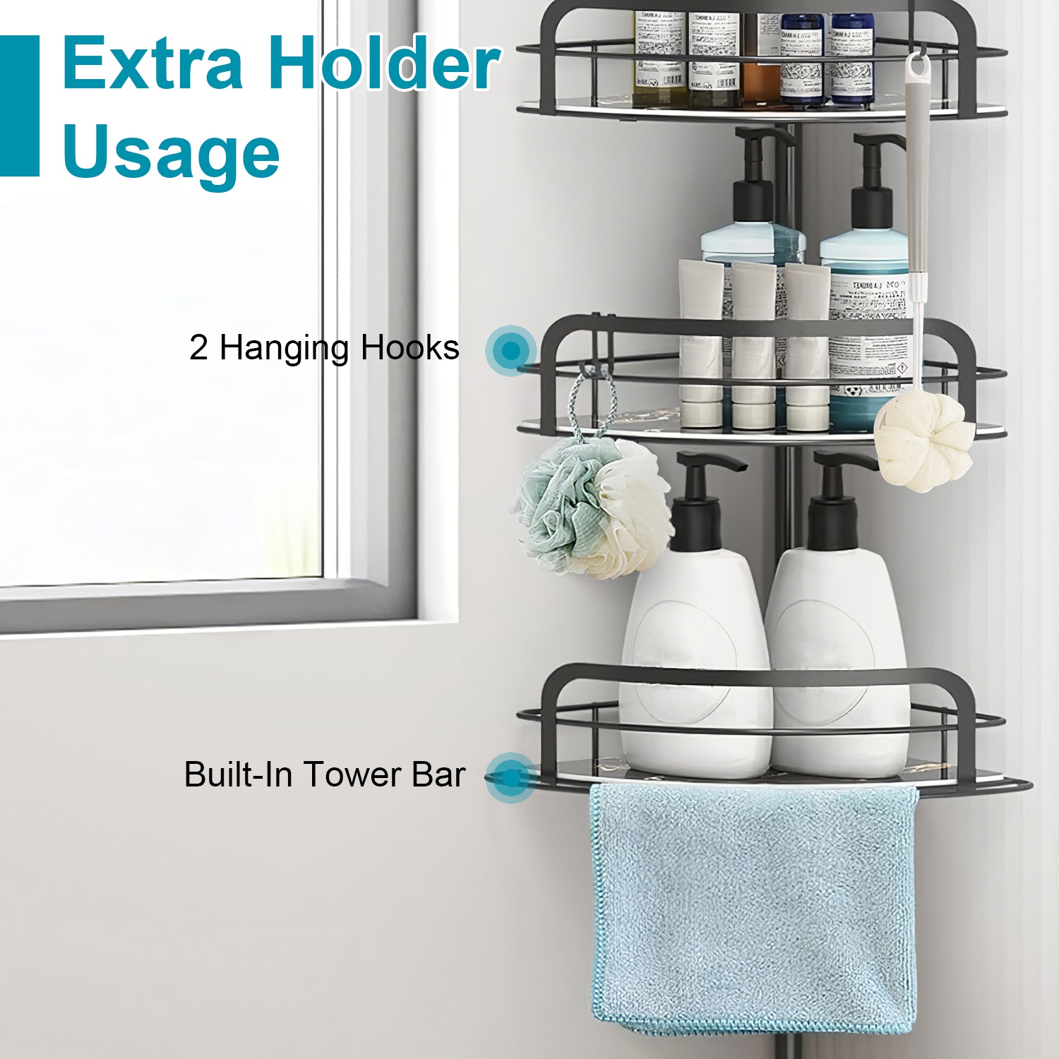 Effortlessly customize your storage space with this versatile bathtub corner tension rod featuring adjustable baskets and pole height. The fully customizable baskets allow for easy movement up or down to accommodate taller bottles, ensuring optimal storage capacity. This feature-rich tension rod is designed to cater to shower spaces ranging from 8.66in to 116.14inches in height, eliminating the need for cutting or modifications. Its robust construction guarantees years of reliable use, while the user-friendly design allows for quick and hassle-free installation. Whether you're looking for organizing your bathroom essentials or seeking a practical solution for storing taller bottles, this adjustable tension rod is an ideal choice.