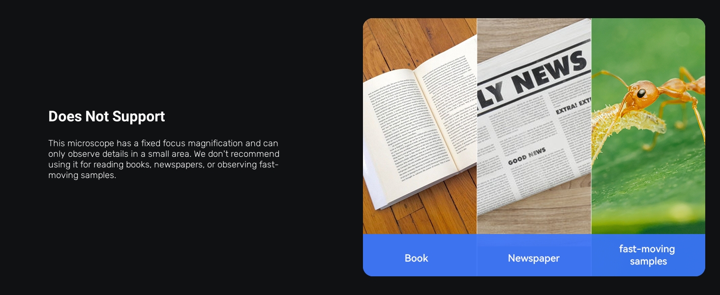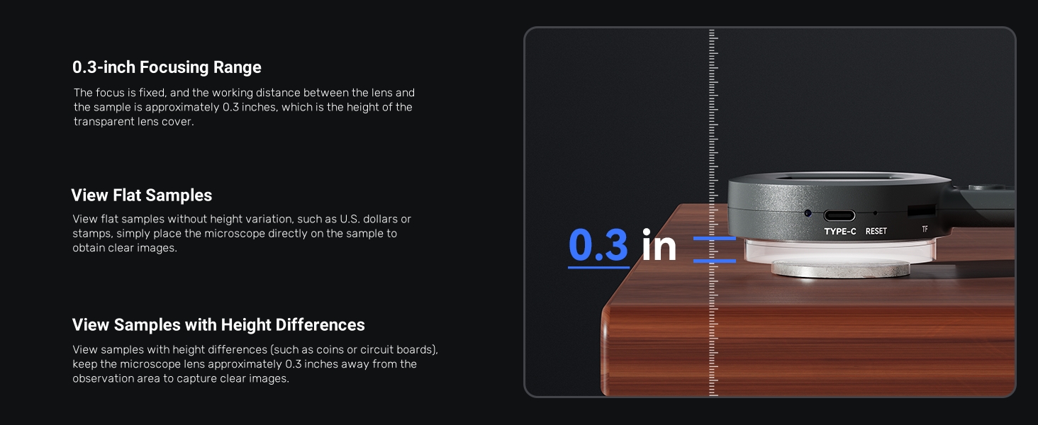 【Easy to Operate】This pocket scope is designed for user-friendliness. With a fixed 100x magnification, there's no need to adjust settings. Simply power on the mini scope, place the illuminated magnifier about 0.3 inches from the object, and you'll get a clear 100x magnified image! It's easy for both kids and adults to use. A handy tool for micro things..