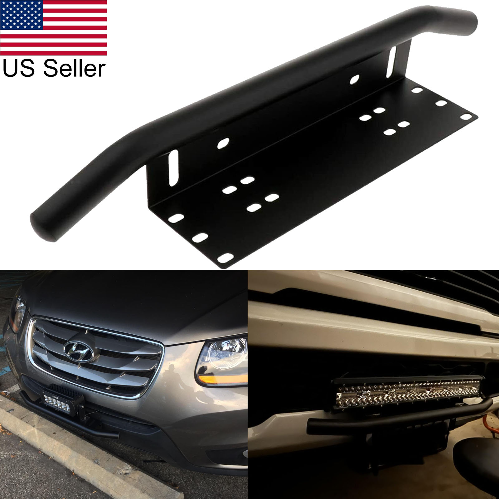 23" Bull Bar Front Bumper License Plate Mount Bracket LED Light Holder Offroad