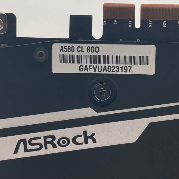 This listing is for an Asrock Challenger Intel Arc A580 8GB GDDR6 Graphics Card in black. It is listed in Uséd - A condition and includes the serial number GAFVUA023197. Please review the provided details carefully before purchasing. Shipping includes free shipping and returns, with a 30 day eBay return policy and the seller paying for the return label. |