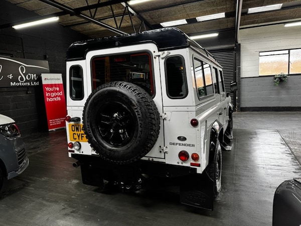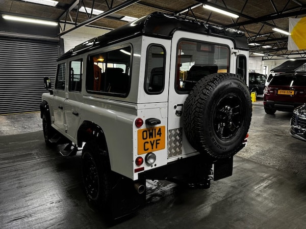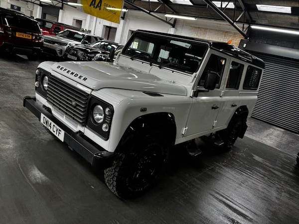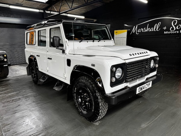 2014 Land Rover Defender 110 2.2 TDCi County Station Wagon - 7 Seats 72,000 Miles A superb example of the iconic Land Rover Defender 110 County Station Wagon, finished in classic Fuji White with a contrasting black roof and sitting on gloss black Boost alloy wheels. A well-presented, low mileage example that offers both rugged capability and everyday practicality. With just 72,000 miles and service history, this Defender has been well looked after and maintained. Key Features: 2.2 TDCi engine - reliable and proven performance 7-seat County Station Wagon - ideal for family or utility use Low road tax band (N1 classification) Gloss black Boost alloy wheels Full rear-mounted spare wheel Tow bar with electrics - ready for work or leisure Privacy glass Upgraded infotainment head unit Electric front windows Side steps for easier access A highly usable and increasingly sought-after Defender, offering classic style with real-world practicality. Viewing is highly recommended. OPEN 7 DAYS A WEEK. FULLY UNDERCOVER SHOWROOM AND CHOICE OF 70+ CARS.Fuji White, Roof - Black Contrast, Seats - Two Cloth Third Row Seats, 4 Speakers, ABS - Anti Lock Braking System, Alarm System - Perimetric and Volumetric with Immobiliser and Battery Back Up Sounder 433mhz, Audio System - CD-Radio-MP3-AUX, Boost Alloy and Goodyear MT-R Tyre, Boost Alloy Wheel and Continental ContiCrossContact AT Tyre, Convenience Pack, Cubby Box - Low-line in Vinyl, Cupholders x2, DSC - Dynamic Stability Control, ETC - Electronic Traction Control, Front Mudflaps, Full Size Spare Wheel, Glass - Rear Quarter Windows, Grille and Headlight Surrounds - Brunel Colour, Headlights - Halogen Projector, Locking Wheel Nuts, Power Assisted Steering, Rear Glazed Doors, Rear Mudflaps, Remote Central Locking, Roof - Body Colour, Roof - Station Wagon, Rubber Floor Trim, Seat Map Pockets, Sidesteps - 4 Steps, Step - Rear, Tow Ball Drop Plate and Electrics, Trim - IP insert - Graphite, Wheel Arches - Body Coloured, Windows - Electric Front, Windows - Heated Rear Windscreen, Windows - Tinted Front and Side, Windscreen Wash-Wipe System with Variable Intermittment Function