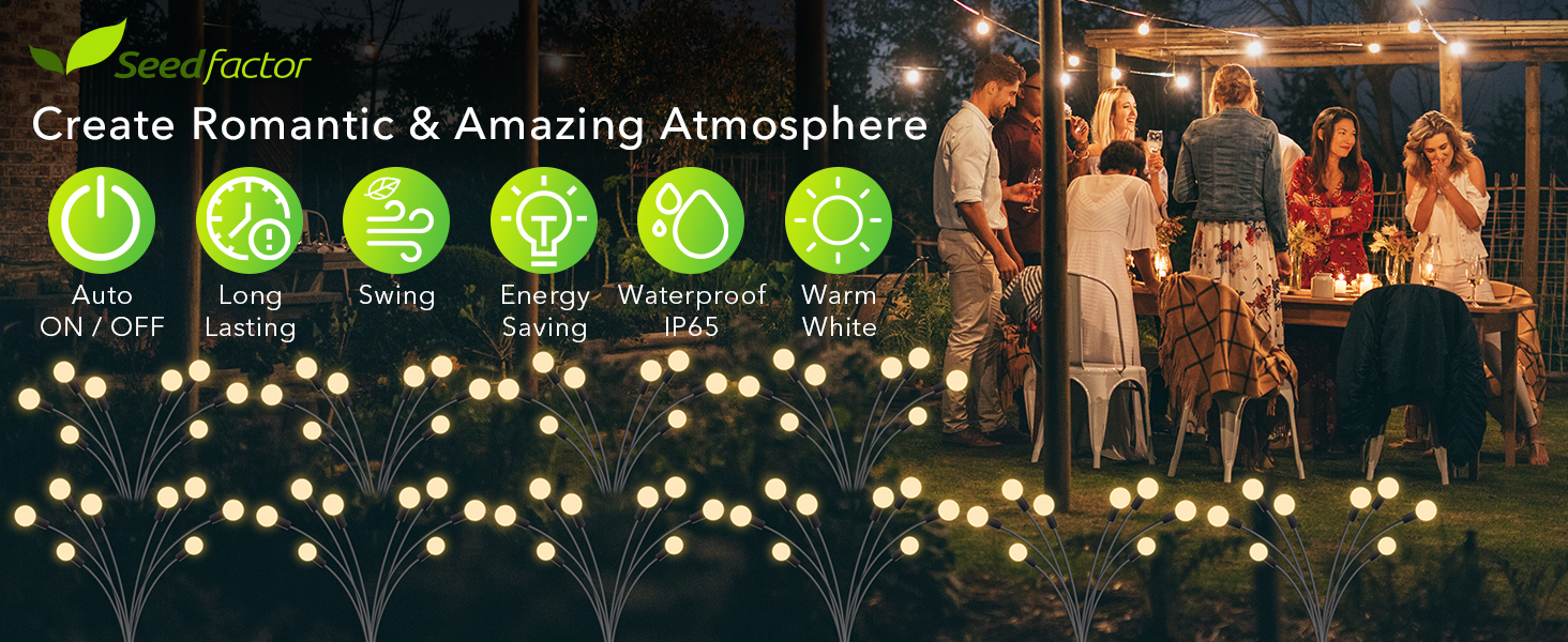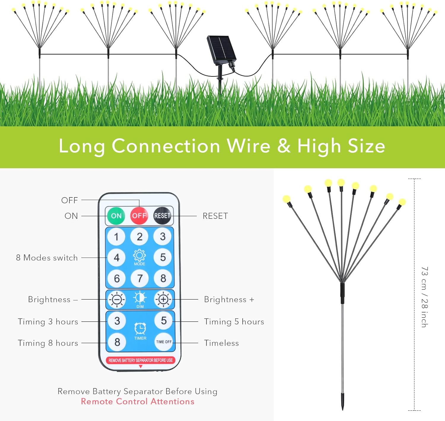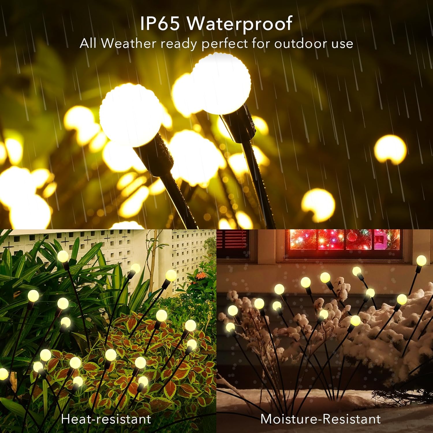 【Perfect Garden Decoration and Holiday Gift】Solar firefly lights create a romantic and warm atmosphere for your yard, patio, lawn, and pathway. They are perfect decorations for any occasion such as Halloween, Christmas, weddings, New Year's, parties, and more. Garden lights also make great gifts for Mother's Day, Valentine's Day, anniversaries, and birthdays.