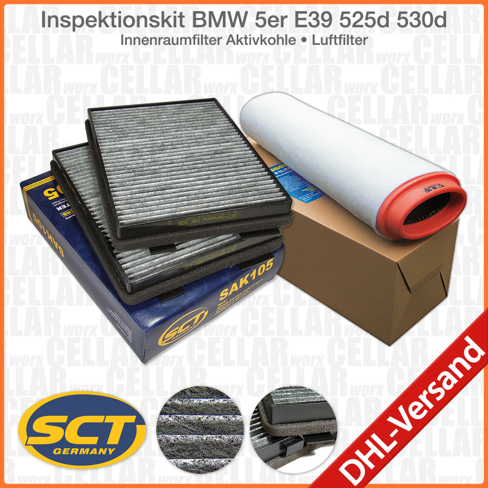 Inspektionskit BMW E39 Diesel | 525d 530d Original SCT Innenraumfilterset mit Aktivkohle Erstklassiges Markenprodukt von SCT Germany • Typ: Aktivkohlefilter • Stabiler Kunststoffrahmen • Umlaufende Dichtung • 100% passgenau SCT Motor-Luftfilter