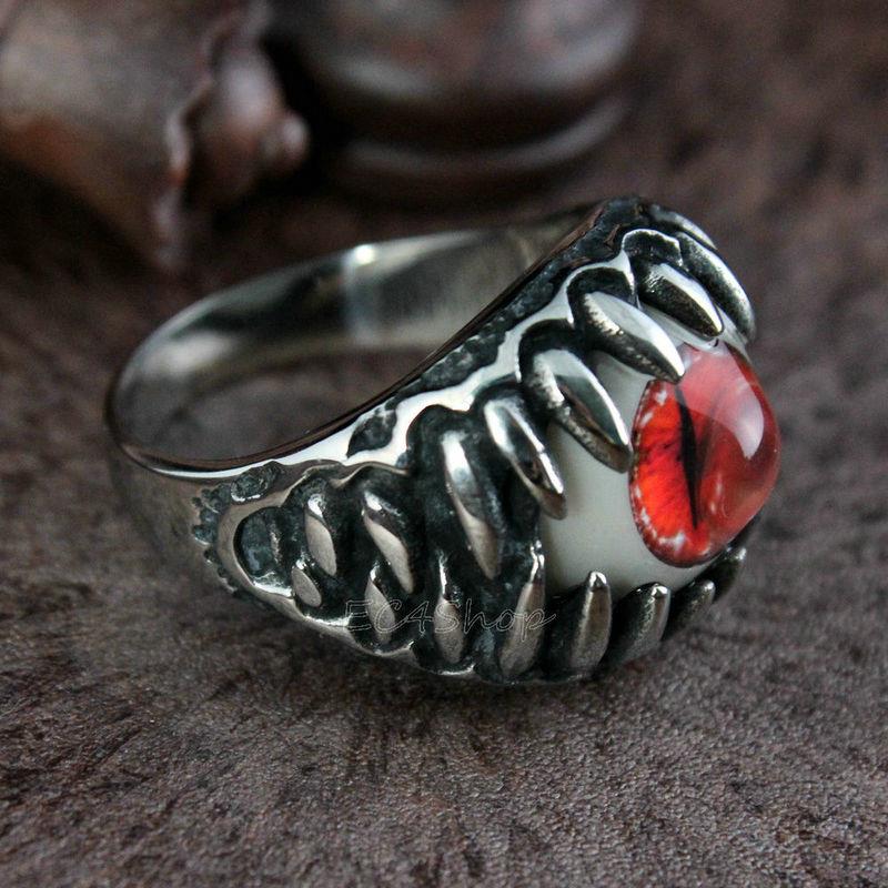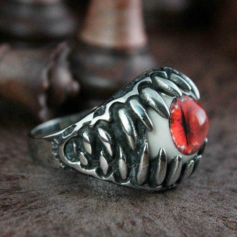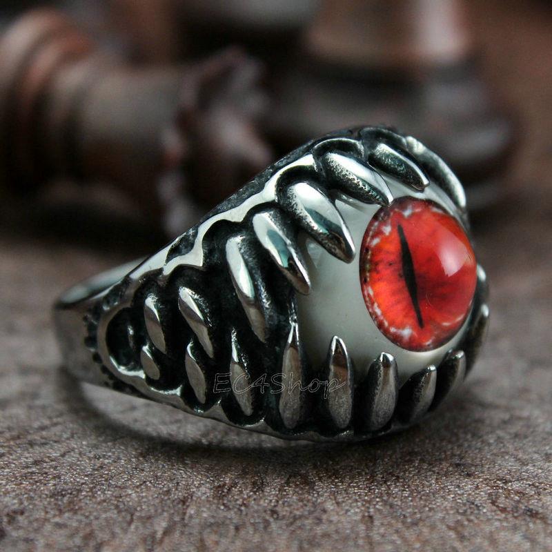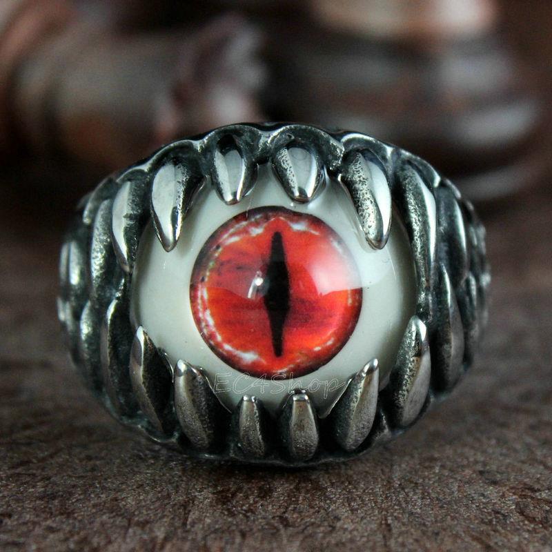 men's biker ring with colorful artificial eye |