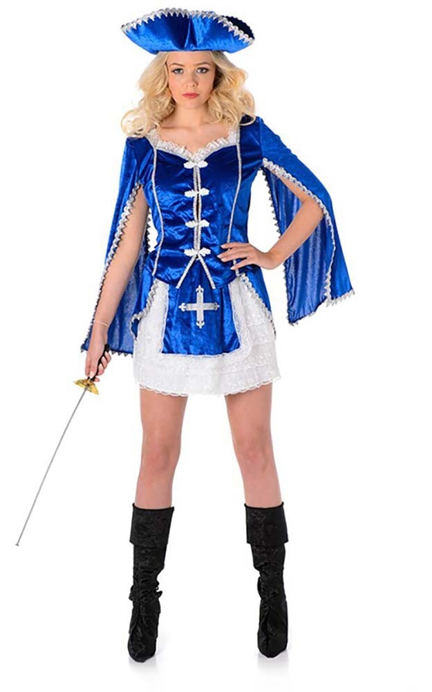 All for one and one for all! Defend the kingdom in this blue musketter costume.