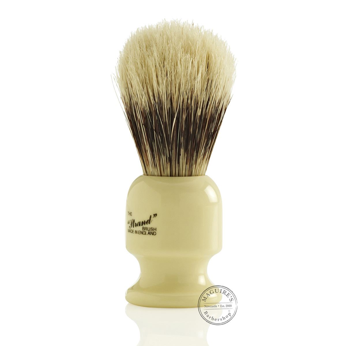 The Progress Vulfix 405b Strand is part of the London Series of brushes. Old English classics at their best. The 405b has a dense loft of excellent grade pure badger to give a firm brush perfect for both soaps and creams and good exfoliation of the skin prior to shaving. The loft has fabulous water retention to ensure a luxurious lather. The handle is a simple design classic with a straight format set over a deeply recessed lower section leading to a flared base to perfectly finish off the classic look. The handle is lathe turned pure resin with a 'faux ivory' finish reminiscent of the most traditional of shaving brushes. All Progress Vulfix Brushes are Hand Made in Isle of Man, British Isles.