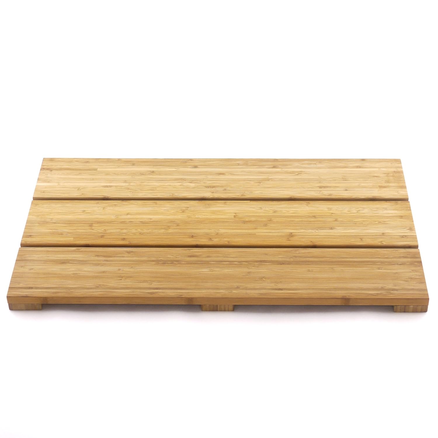 - This spa style bamboo floor mat measures approx. 30" X 17" and is perfect for stepping out of the bath or shower